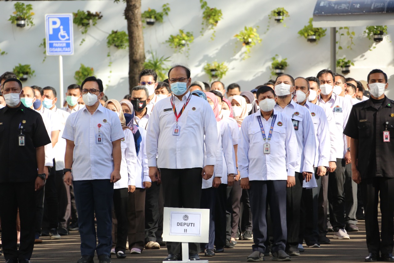 KEMENKO PMK – Mengawali hari kerja di tahun 2022, Menteri Koordinator Bidang Pembangunan Manusia dan Kebudayaan (Menko PMK) Muhadjir Effendy memimpin kegiatan apel dan doa bersama lintas agama yang dilaksanakan oleh seluruh pegawai Kemenko PMK di halaman Kantor Kemenko PMK, Jakarta, Senin (3/1).
