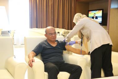 Menko PMK menerima Vaksin Meningitis sebelum berangkat kunker ke Arab Saudi.
