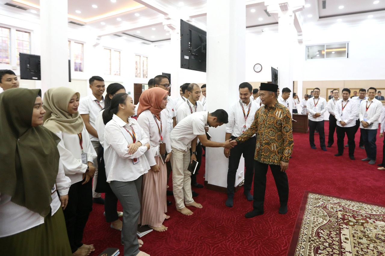 Jakarta (10/2) – Menteri Koordinator Bidang Pembangunan Manusia dan Kebudayaan (Menko PMK) Muhadjir Effendy melakukan pertemuan dan perkenalan dengan ratusan Calon Pegawai Negeri Sipil (CPNS) angkatan 2019 yang bekerja di berbagai divisi kerja Kemenko PMK di Ruang Heritage, Senin (10/2). Dihadapan para CPNS yang didominasi usia muda, Muhadjir memberikan wejangan dan pesan agar para CPNS memperhatikan beberapa hal dalam pekerjaan, yaitu: prestasi, dedikasi, loyalitas, dan budi pekerti yang baik.