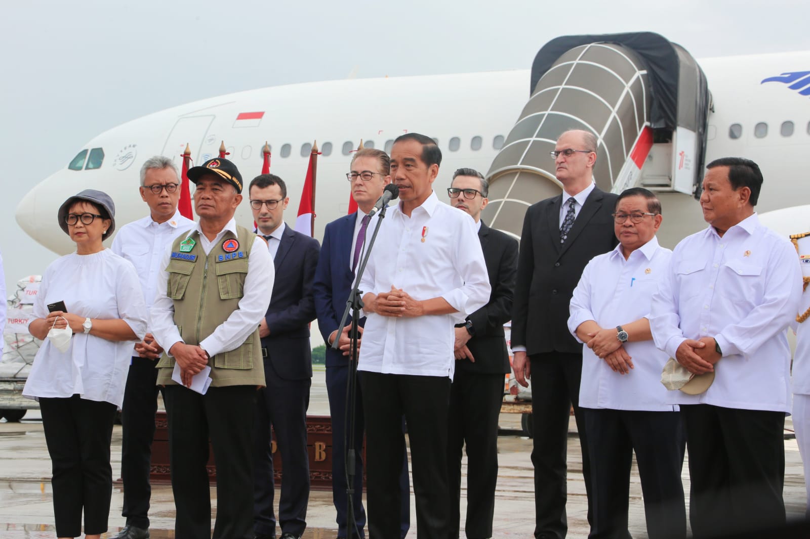 Presiden RI Joko Widodo melepas Delegasi Republik Indonesia dalam "diplomasi kemanusiaan" berupa pengiriman dukungan bantuan pemerintah Indonesia untuk korban gempa Turki dan Suriah di Lanud Halim Perdanakusuma, pada Selasa, (21/02/2023). Delegasi Republik Indonesia dipimpin oleh Menteri Koordinator Bidang Pembangunan Manusia dan Kebudayaan (Menko PMK) Muhadjir Effendy, didampingi oleh Kepala BNPB Suharyanto, Ketua Komisi VIII DPR RI Ashabul Kahfi, Deputi bidang Bencana Kemenko PMK Sudirman, dan perwakilan Kementerian Lembaga terkait.