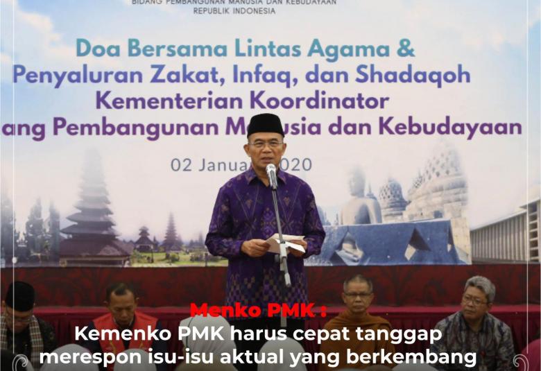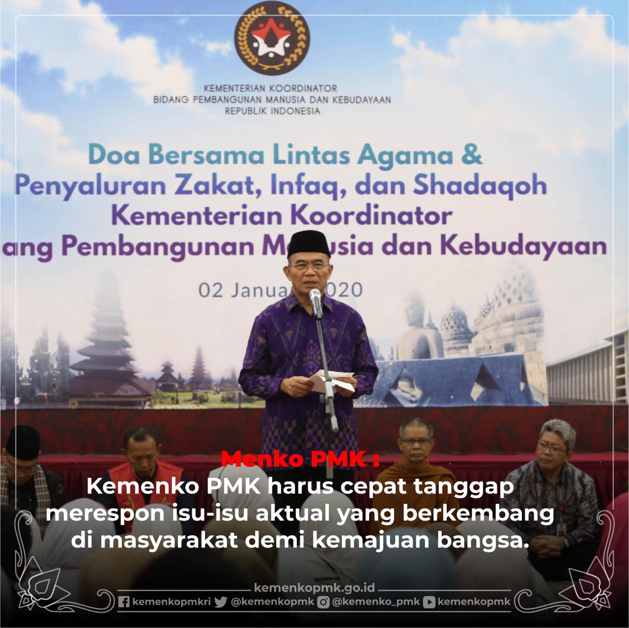 Selain itu, tegas Muhadjir, Kemenko PMK harus cepat tanggap merespon isu-isu aktual yang berkembang di masyarakat demi kemajuan dan kesejahteraan bangsa.