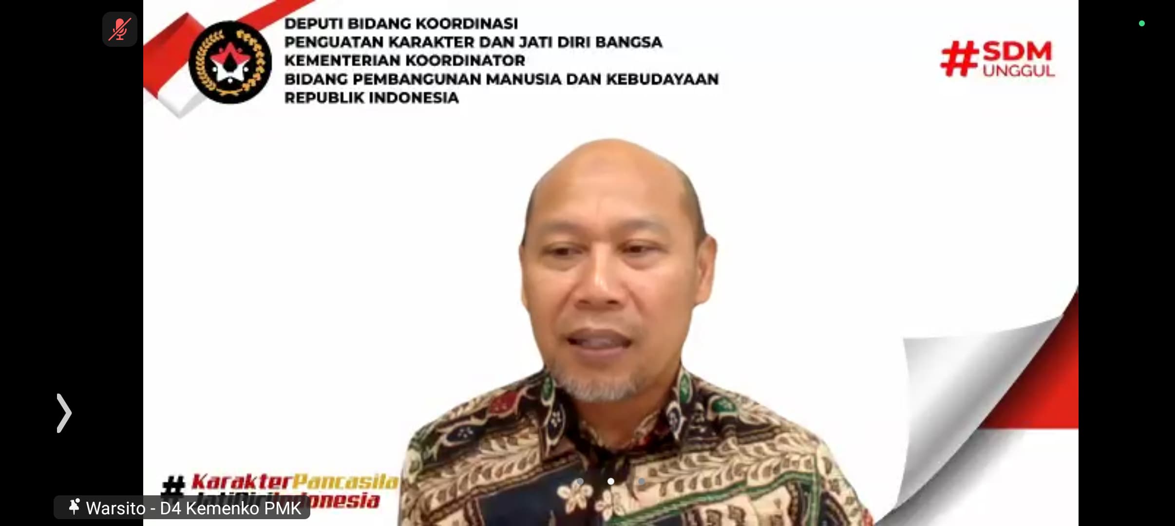 KEMENKO PMK -- Deputi Bidang Koordinasi Penguatan Karakter dan Jati Diri Bangsa Kementerian Koordinator Bidang Pembangunan Manusia dan Kebudayaan (Kemenko PMK) Warsito, menyampaikan urgensi peningkatan pembangunan kepemudaan di Indonesia.