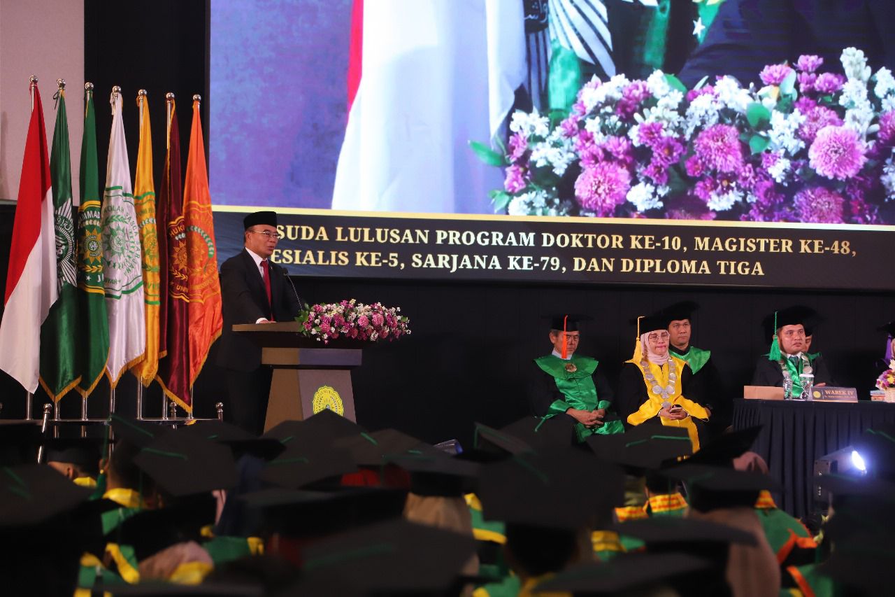 "Saya yakin, saya lihat wajah-wajah yang diwisuda hari ini adalah wajah yang menjanjikan, wajah yang optimis. Mudah-mudahan Allah selalu menyertai langkah kalian semua," ujarnya.