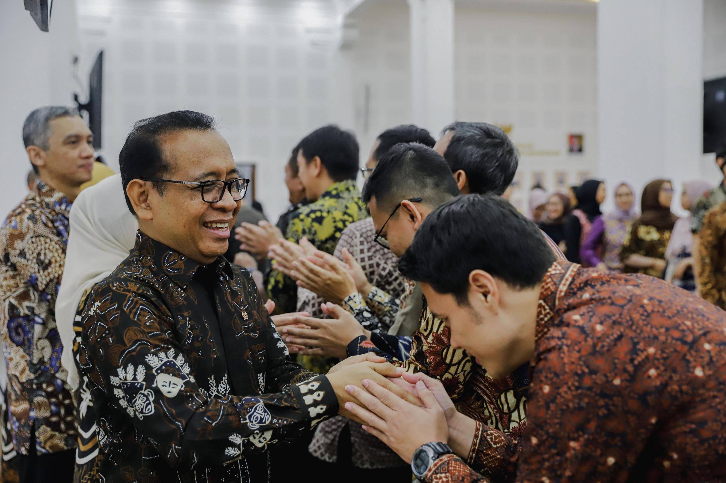 Dalam suasana penuh kehangatan dan kebersamaan, Menteri Koordinator Bidang Pembangunan Manusia dan Kebudayaan (Menko PMK) Pratikno menyampaikan ucapan selamat Idul Fitri kepada seluruh jajaran pegawai, dan mengajak untuk saling memaafkan atas kekhilafan yang telah terjadi.