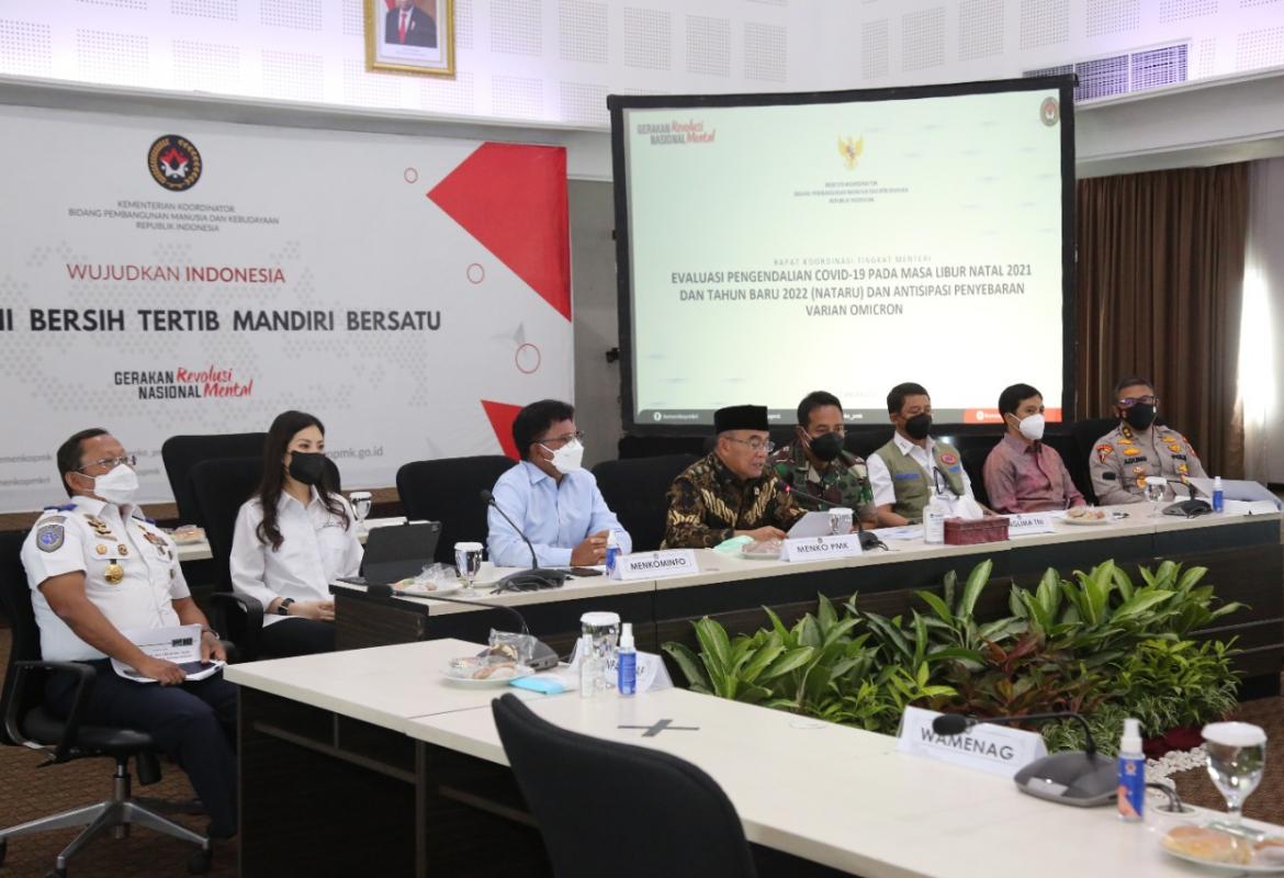 KEMENKO PMK – Pemerintah lintas kementerian/lembaga melaksanakan rapat evaluasi terkait penyelenggaraan penanganan Co