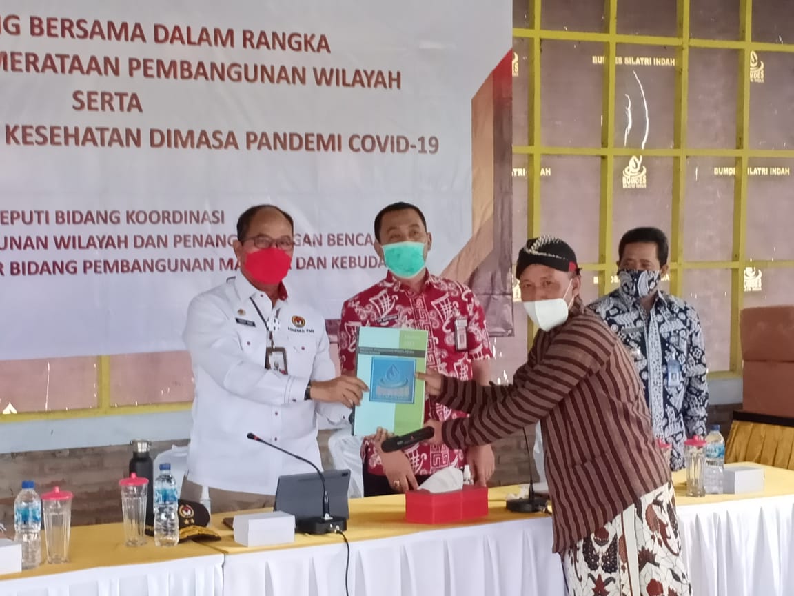 Kunjungan kerja tersebut dalam rangka monitoring pelaksanaan pemerataan pembangunan wilayah, pengembangan Badan Usaha Milik Desa (BUMDesa) serta kampanye protokol kesehatan dimasa pandemi Covid-19.