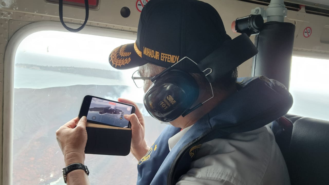 Dalam rangka Hazard Asessment (Identifikasi Bahaya), Menteri Koordinator Bidang Pembangunan Manusia dan Kebudayaan (Menko PMK) Muhadjir Effendy, bersama Kepala BNPB Suharyanto, Kepala BMKG Dwikorita Karnawati, dan Kepala PVMBG Hendra Gunawan melakukan inspeksi gabungan ke Pulau Gunung Anak Krakatau melalui udara, pada Kamis (28/4).