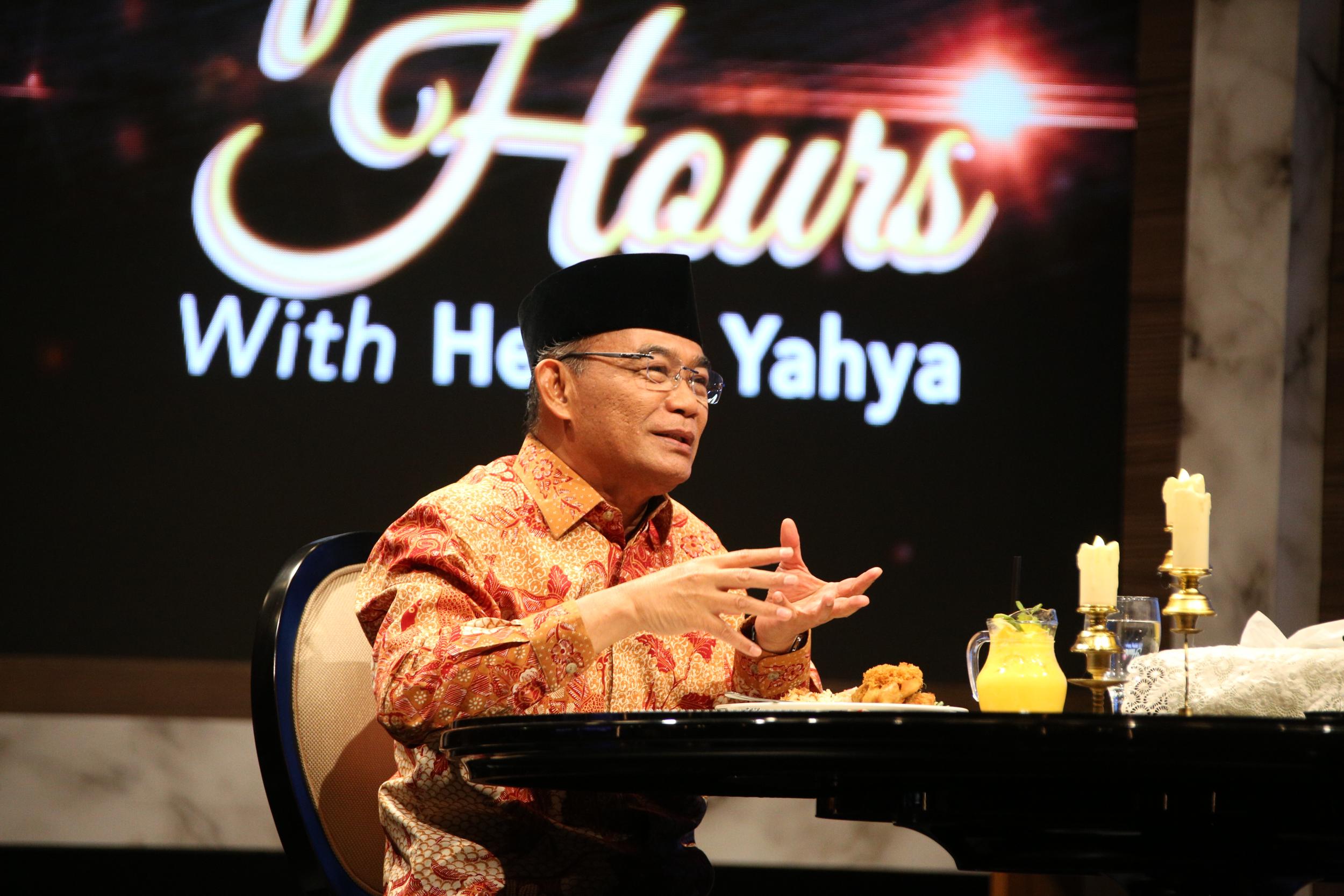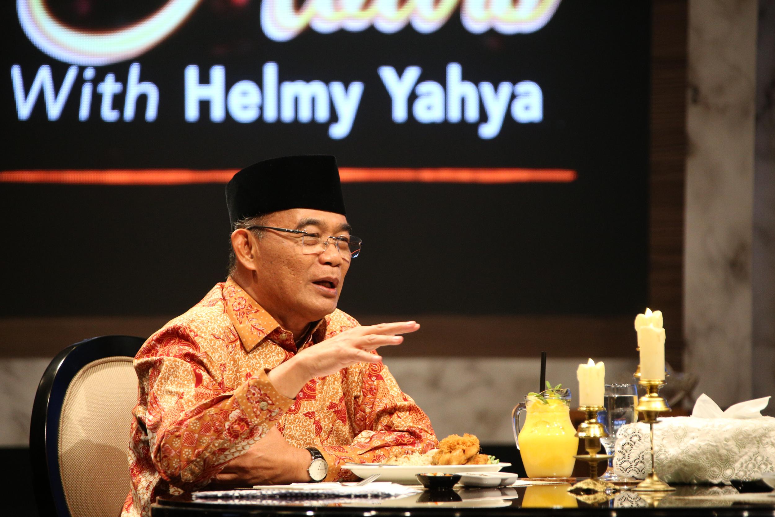 Menko PMK, Muhadjir Effendy saat menjadi narasumber acara After Hours with Helmi Yahya yang disiarkan langsung dari Studio INews TV, Jakarta, Jumat (7/8) malam.