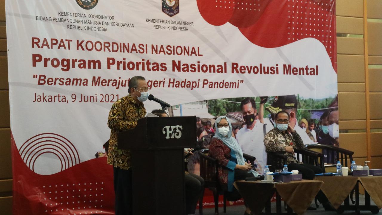 Jakarta - Dalam rangka percepatan pelaksanaan program/kegiatan Gerakan Nasional Revolusi Mental (GNRM), Kementerian Koordinator Bidang Pembangunan Manusia dan Kebudayaan (Kemenko PMK) dan Kementerian Dalam Negeri (Kemendagri) menggelar rapat koordinasi nasional (rakornas) lintas Kementerian/Lembaga dan Pemerintah Daerah, Rabu (9/6).