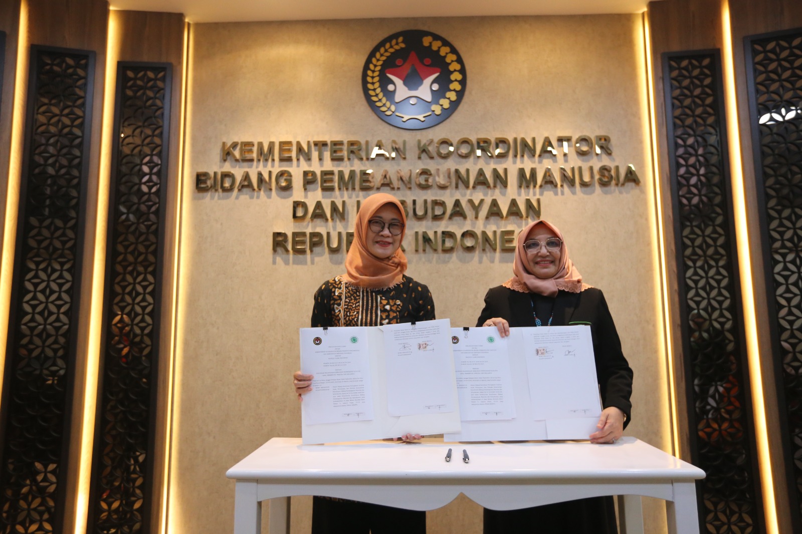 Penandatanganan dilakukan antara Deputi Bidang Kordinasi Peningkatan Kualitas Anak, Perempuan, dan Pemuda Kemenko PMK Woro Srihastuti dengan Ketua MUI Bidang Perempuan, Remaja dan Keluarga Amany Lubis.