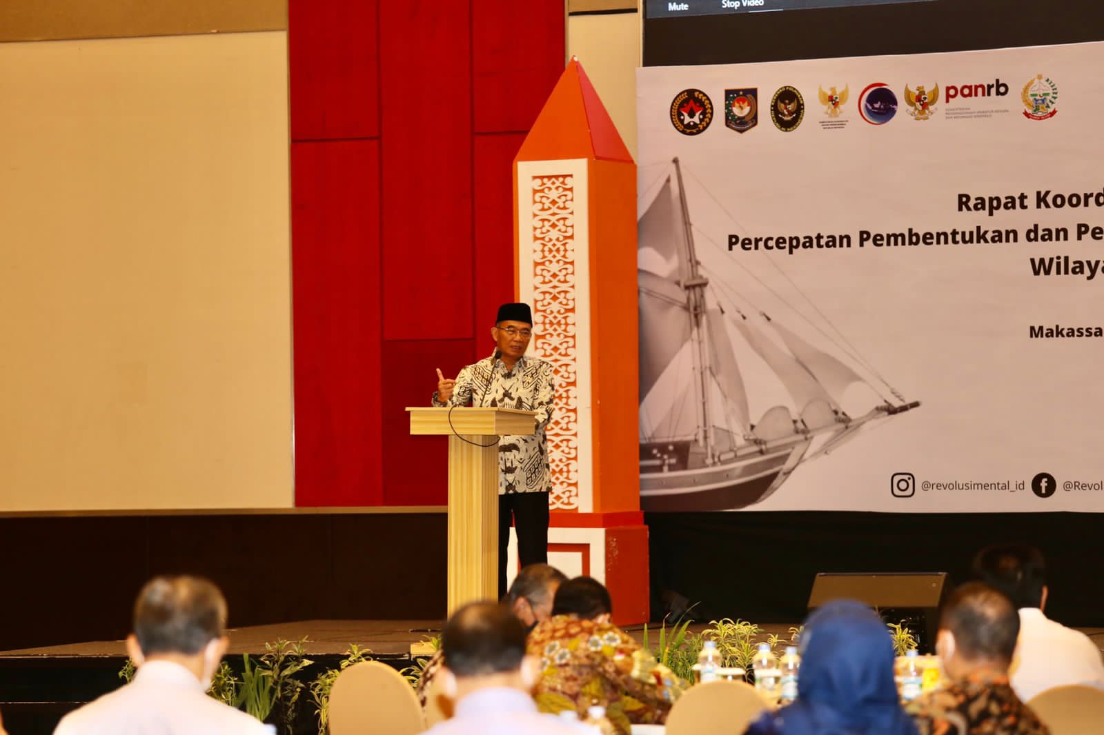 KEMENKO PMK - Sebagai upaya untuk mempercepat pembentukan Gugus Tugas Daerah (GTD) Gerakan Nasional Revolusi Mental (GNRM) di Indonesia Timur, Kementerian Koordinator Bidang Pembangunan Manusia dan Kebudayaan (Kemenko PMK) Muhadjir Effendy menggelar Rapat Koordinasi Gerakan Nasional Revolusi Mental Region Timur.