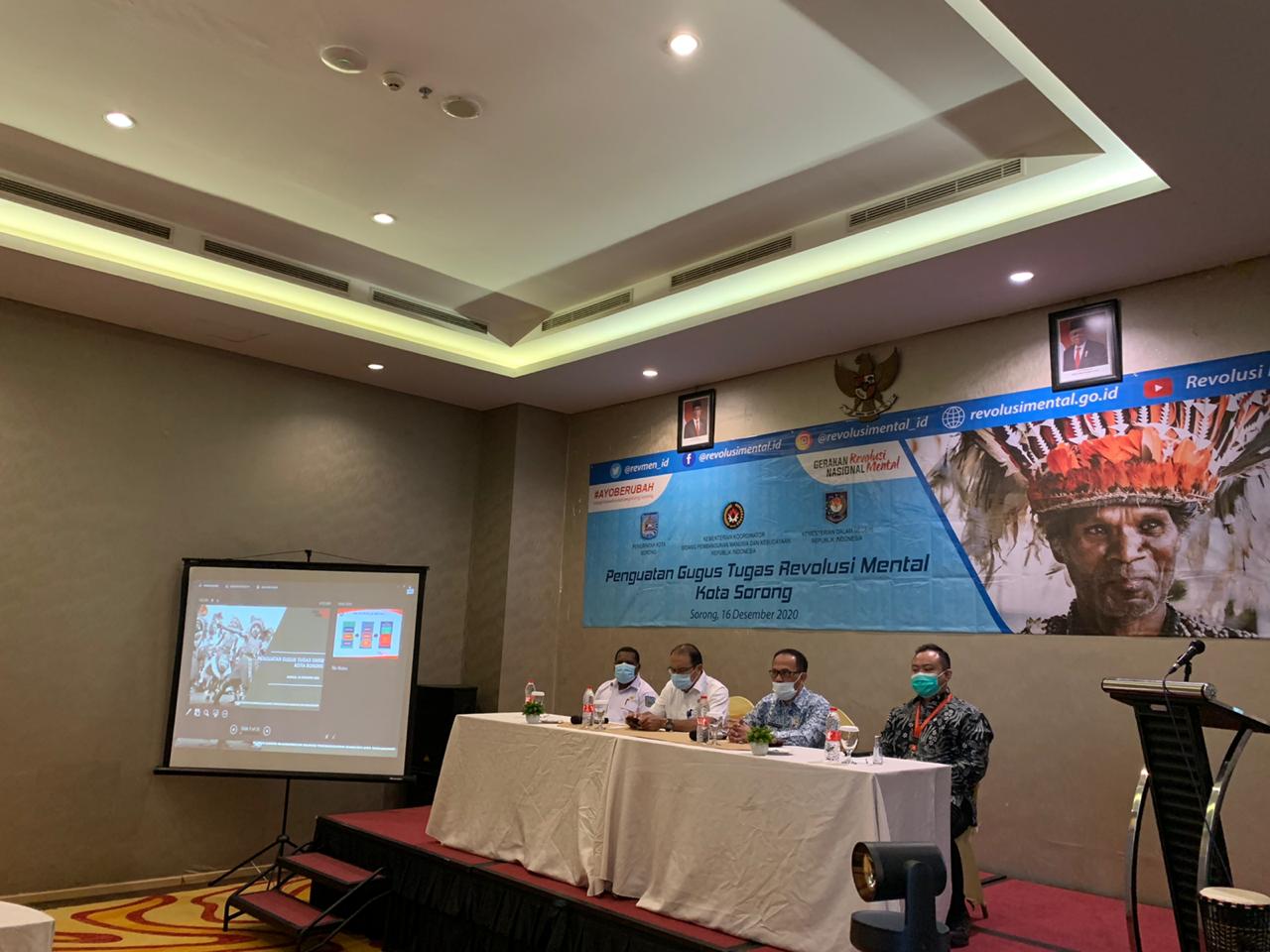 Sebagai upaya merealisasikan berbagai program Revolusi Mental, Pemerintah Kota Sorong  bersama Kementerian Koordinator Bidang Pembangunan Manusia dan Kebudayaan (Kemenko PMK) melaksanakan kegiatan penguatan Gugus Tugas Revolusi Mental (GNRM), pada Rabu (16/12), di Hotel Swiss-Bel, Kota Sorong, Papua Barat.
