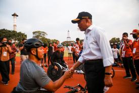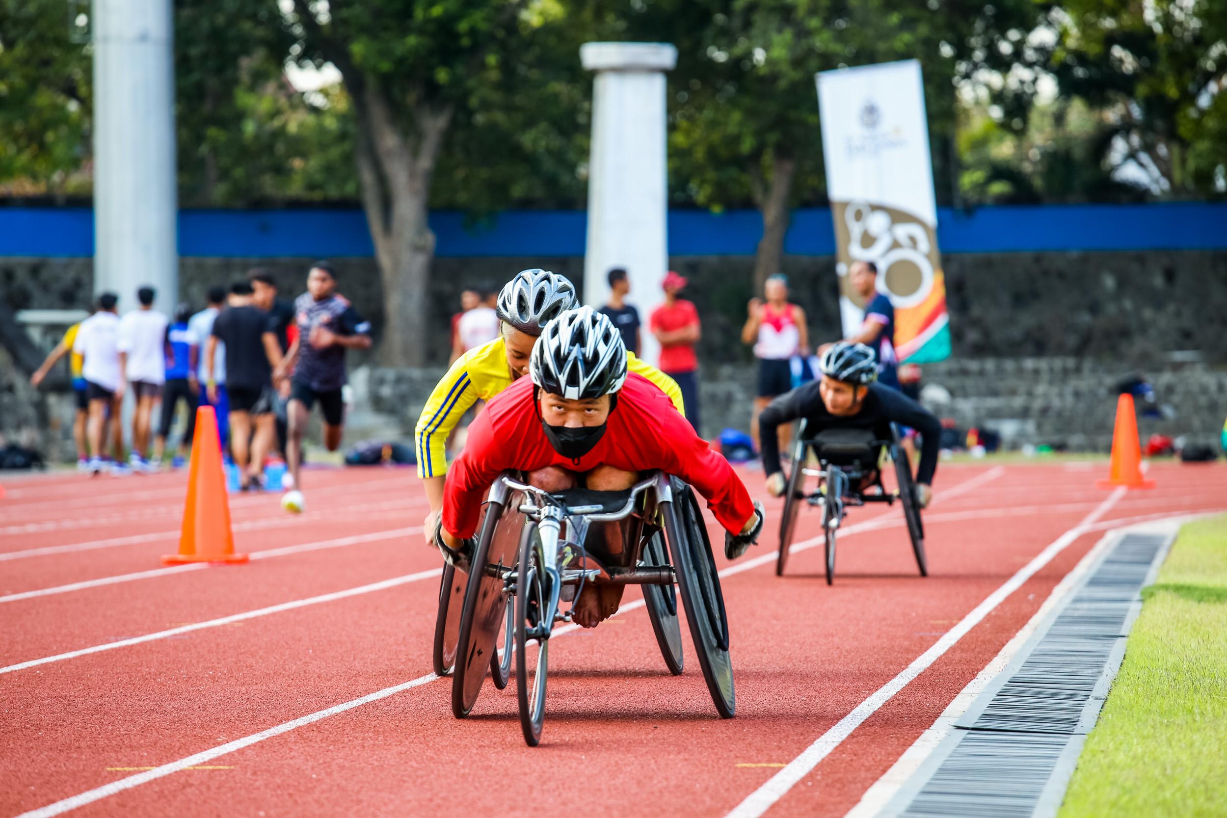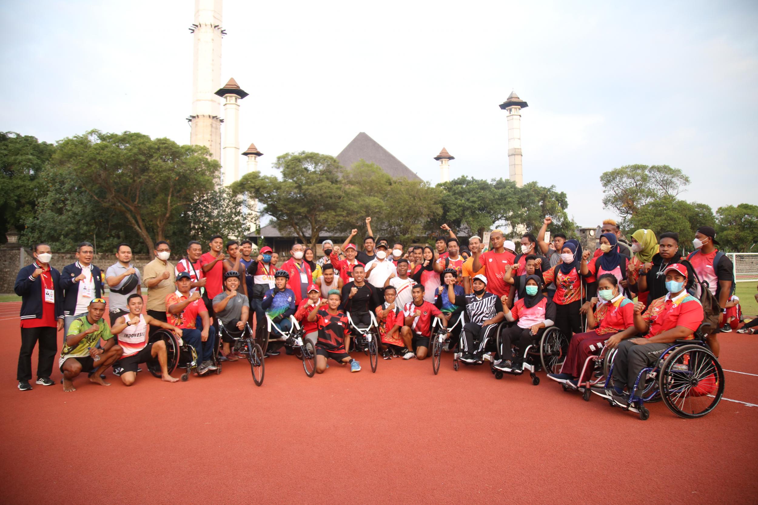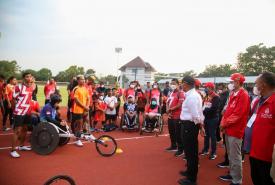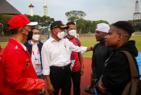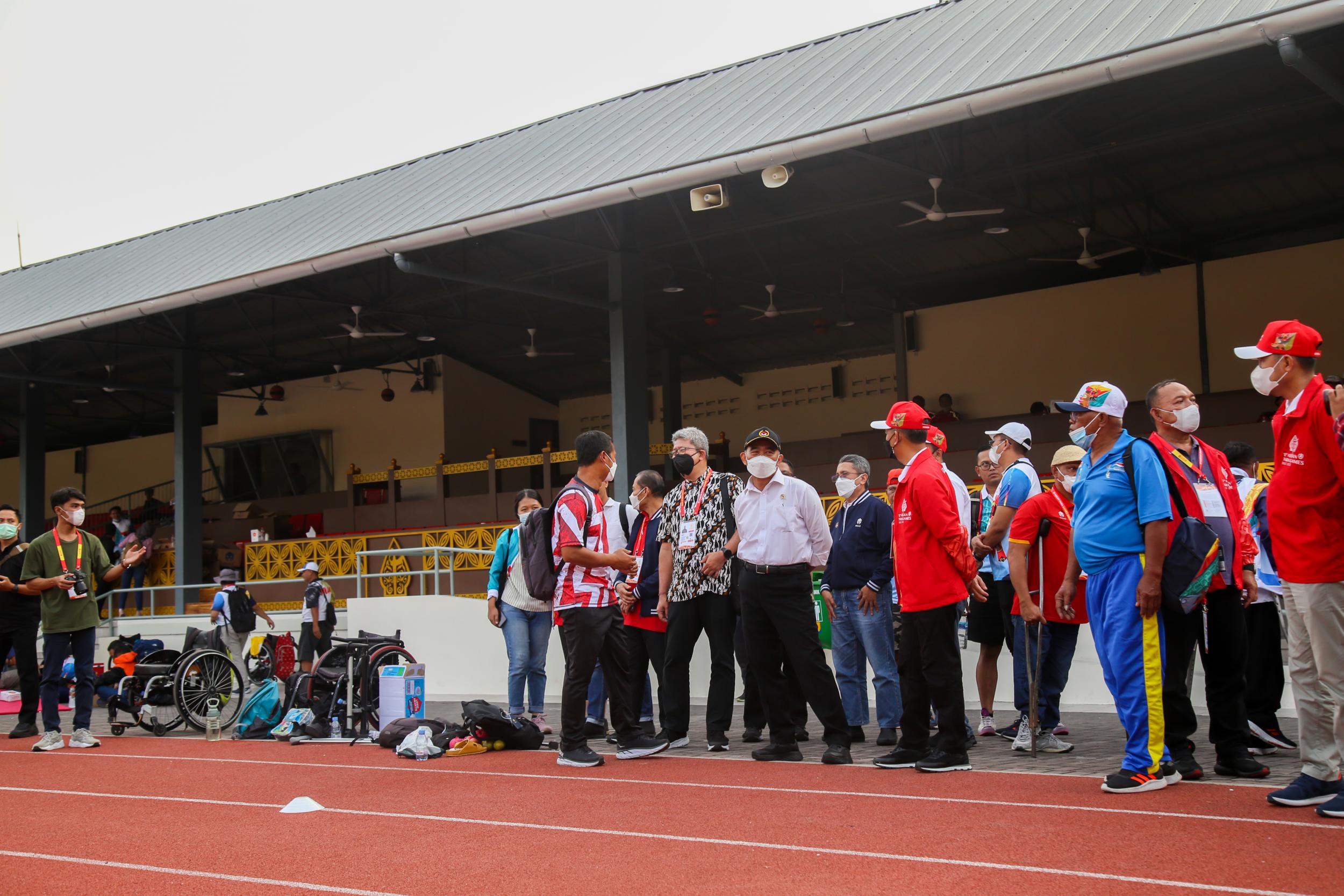 Menko PMK Muhadjir Effendy didampingi oleh Chief de Mission (CDM) ASEAN Para Games Kontingen Indonesia Andi Herman mengecek langsung Stadion Sriwedari, Solo, pada Jumat (29/7) sekaligus memberi motivasi kepada Atlet Indonesia yang akan bertanding di Asean Para Games 2022.