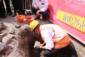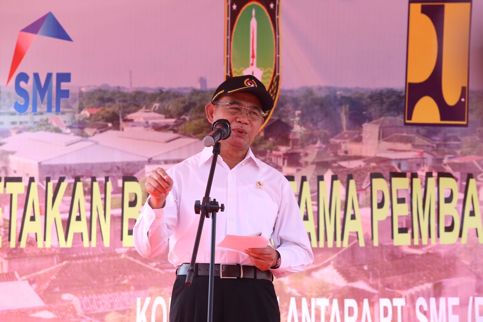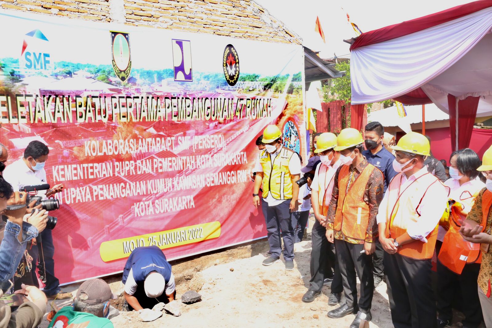 Menko PMK melakukan peletakan batu pertama pembangunan rumah layak huni di Solo