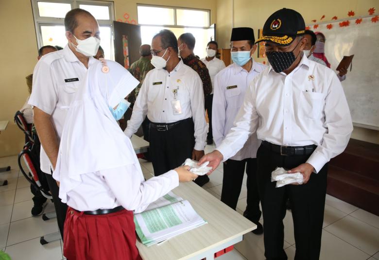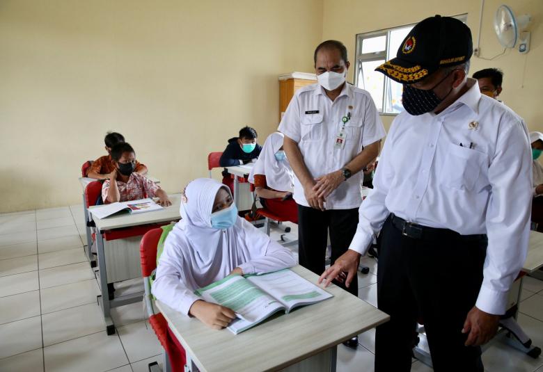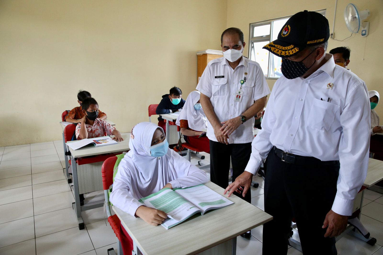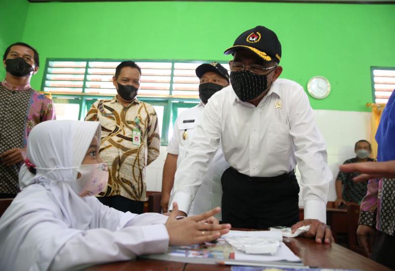 2. Menko PMK meninjau pelaksanaan PTM di Madrasah Ibtidaiyah Negeri (MIN) Tanjung Redeb, Kabupaten Berau, Kalimantan Timur