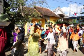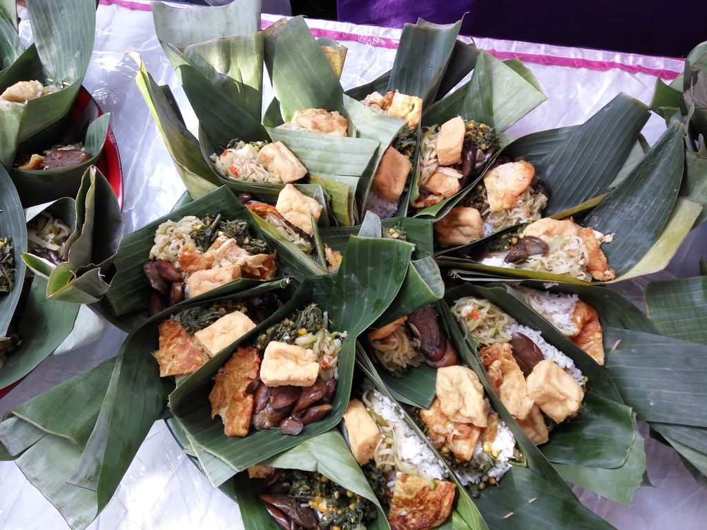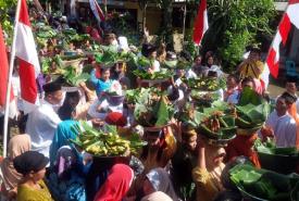 Beberapa waktu lalu, puluhan ibu berbaris rapi dalam busana khas Suku Osing. Si pria memakai baju hitam-hitam dan si perempuan memakai kebaya hitam dan bawahan jarik Banyuwangi. Di atas kepala mereka tersunggi baskom berisi ithuk-ithukan yang di dalamnya ada makanan menu sederhana.