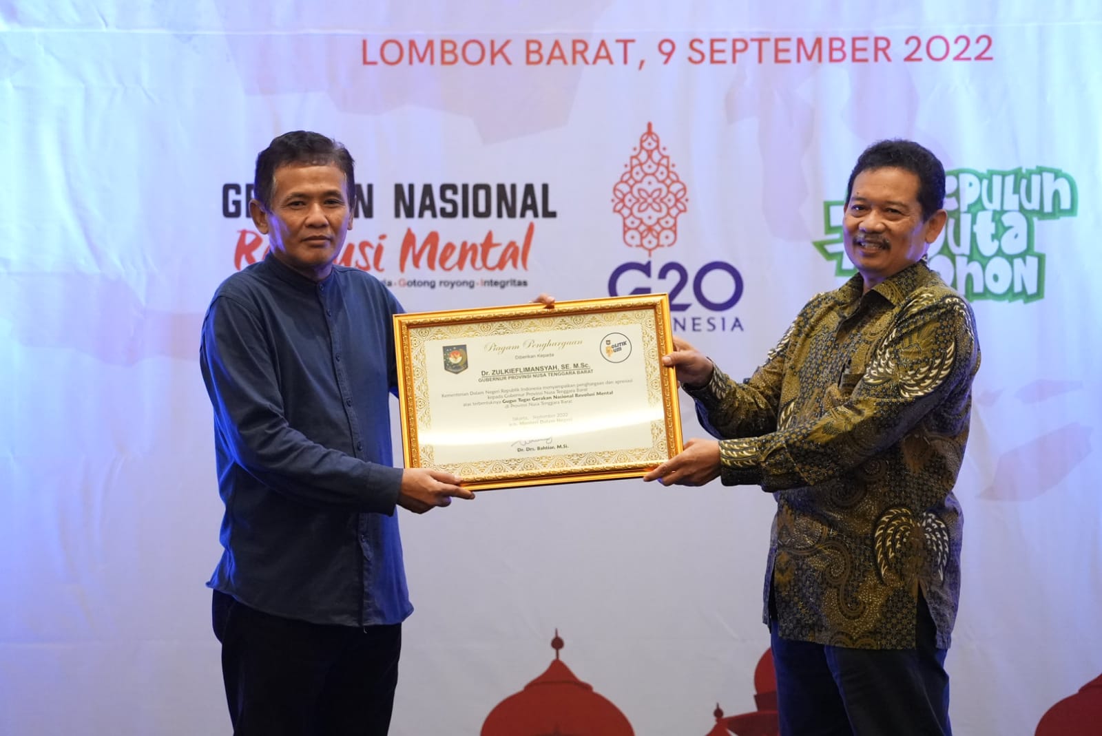 Pada kegiatan rapat koordinasi ini, Kemenko PMK turut memberikan penghargaan kepada Pemerintah Daerah NTB atas pencapaian 100% pembentukan GTD di seluruh Kabupaten/Kota, serta sebagai wujud apreasiasi atas kerja sama yang baik sebagai tuan rumah penyelenggaraan Rapat Koordinasi Nasional Gugus Tugas Daerah GNRM Regional Tengah.