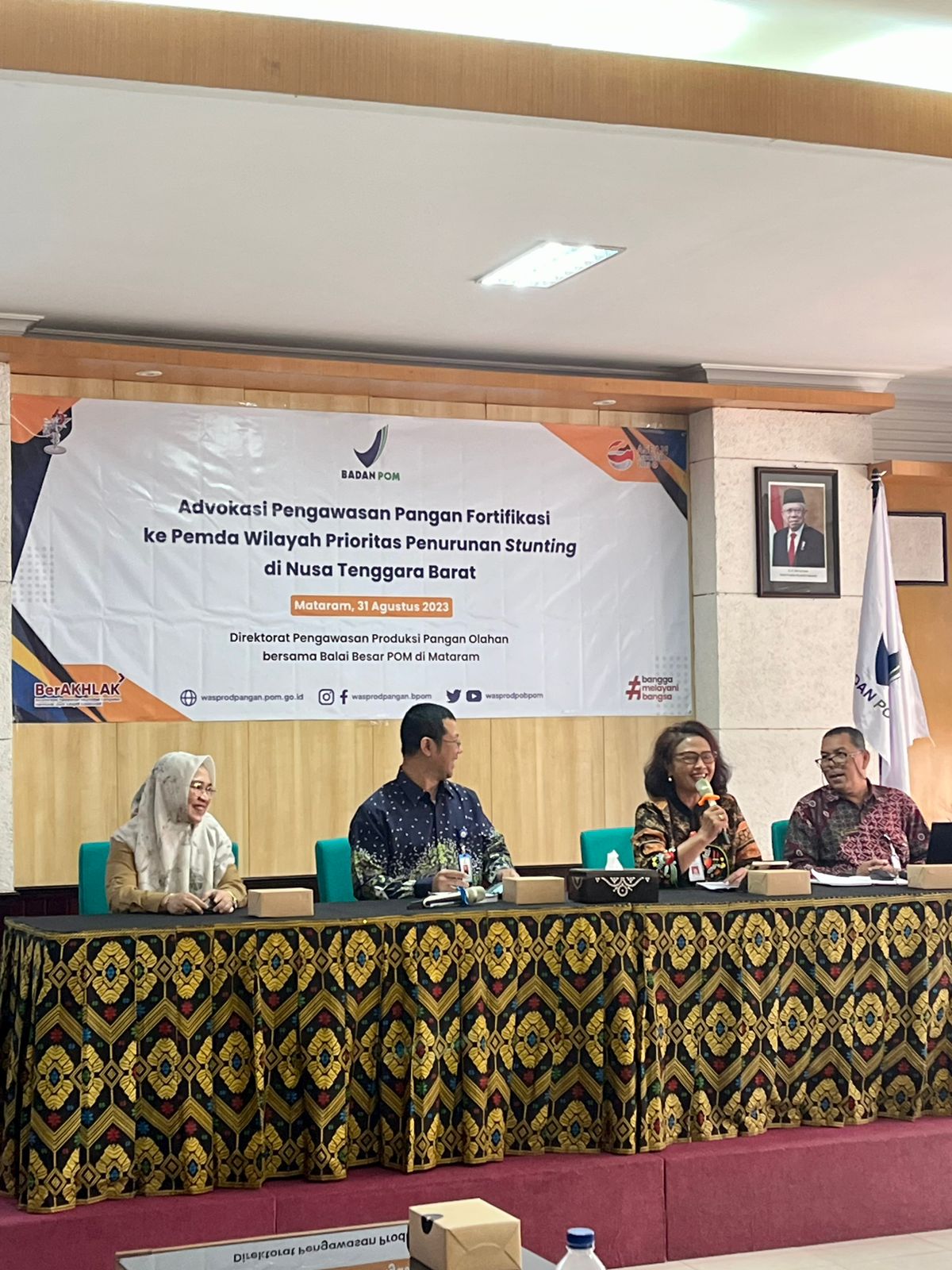 Dalam acar ini, turut hadir Kepala Balai BPOM Kota Mataram - Yosef Dwi Irwan Prakasa S, S.Si Apt; Ketua Tim Pengawasan Penerapan CPPOB Sarana Produksi Pangan Risiko Rendah, Pangan Fortifikasi, dan Bahan Baku Lain - Dra. Cendekia Sri Muwarni, Apt. M.K.M dan seluruh OPD terkait se Provinsi NTB.