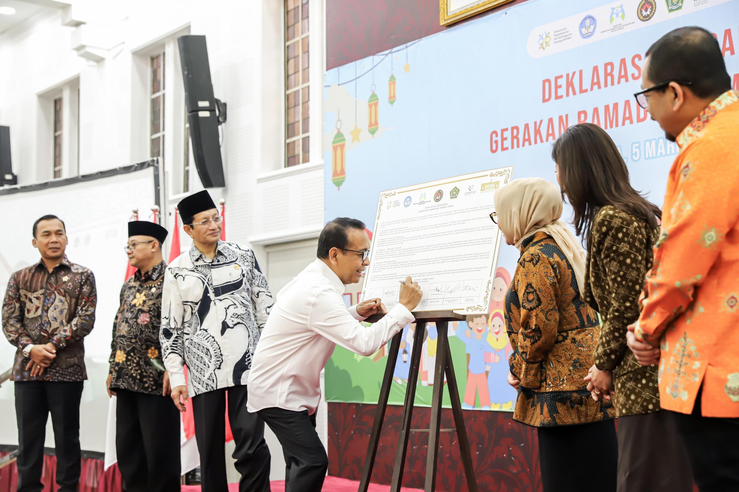 Deklarasi Bersama Gerakan Ramadan Ramah Anak dengan tagline Ramadan Ceria, Anak Bahagia dilakukan di Ruang Heritage Kantor Kementerian Koordinator Pembangunan Manusia dan Kebudayaan (Kemenko PMK) pada Rabu (5/3/2025).