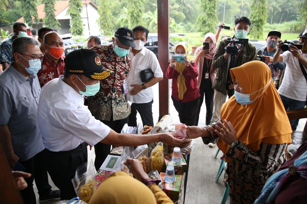 Pada kesempatan tersebut, Menko PMK juga berdialog terkait pengalaman KPM PKH graduasi mandiri dalam mengembangkan usaha sekaligus menyerahkan KUR secara simbolis senilai Rp30 juta dan Rp10 juta.
