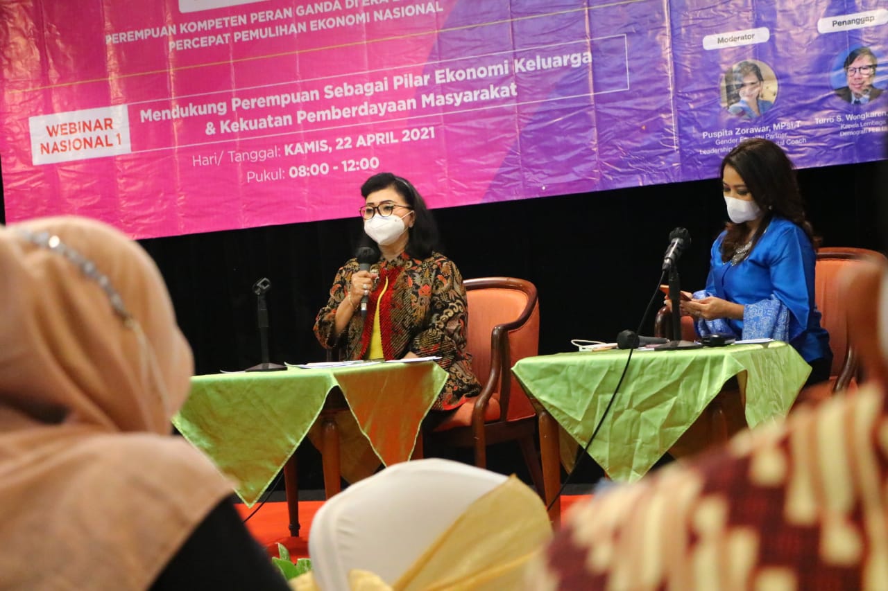 Khususnya di bidang ekonomi, Femmy membeberkan, saat ini pemerintah berupaya mendorong perempuan untuk terlibat aktif menjadi bagian roda perekonomian. Hal itu disampaikannya dalam Webinar Nasional Bertajuk Perempuan Kompeten Peran Ganda di Era Ekonomi Digital Percepat Pemulihan Ekonomi Nasional, pada Kamis (22/4).