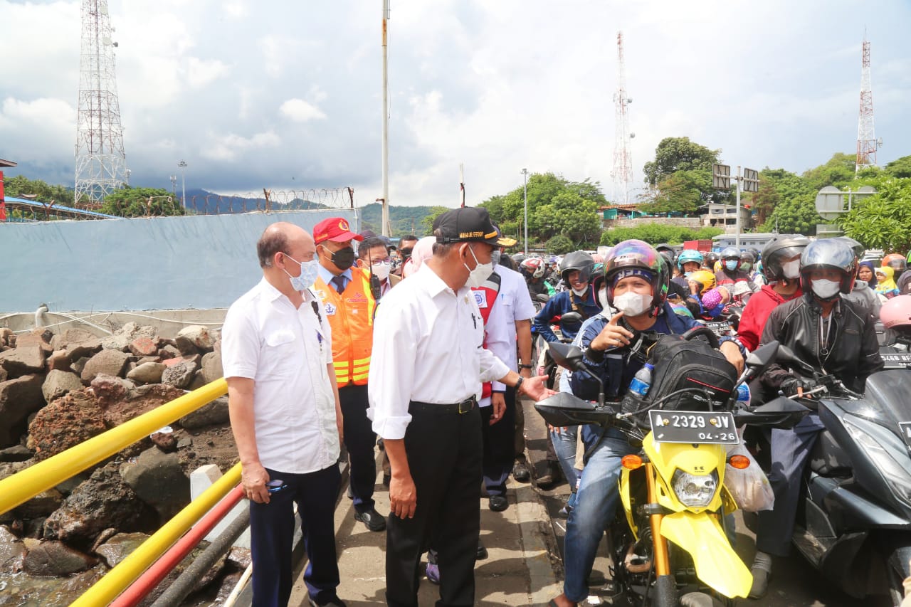 “Alhamdulillah pada siang hari ini untuk penyebrangan, sudah relatif normal. Rata-rata sudah tidak menunggu lama di tempat ini, kemudian kita akan terus memaksimalkan berbagai upaya termasuk penambahan kapal dan mengatur limit bongkar muat, serta giliran kapal masuk ke dermaga lebih kita perketat proses pengangkutan mereka,” kata Muhadjir.