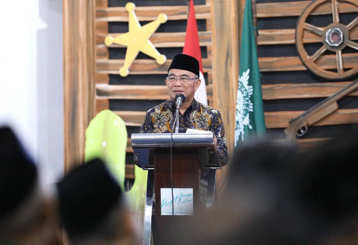 Menteri Koordinator Bidang Pembangunan Manusia dan Kebudayaan (Menko PMK) Muhadjir Effendy memberikan tausiyah pada p