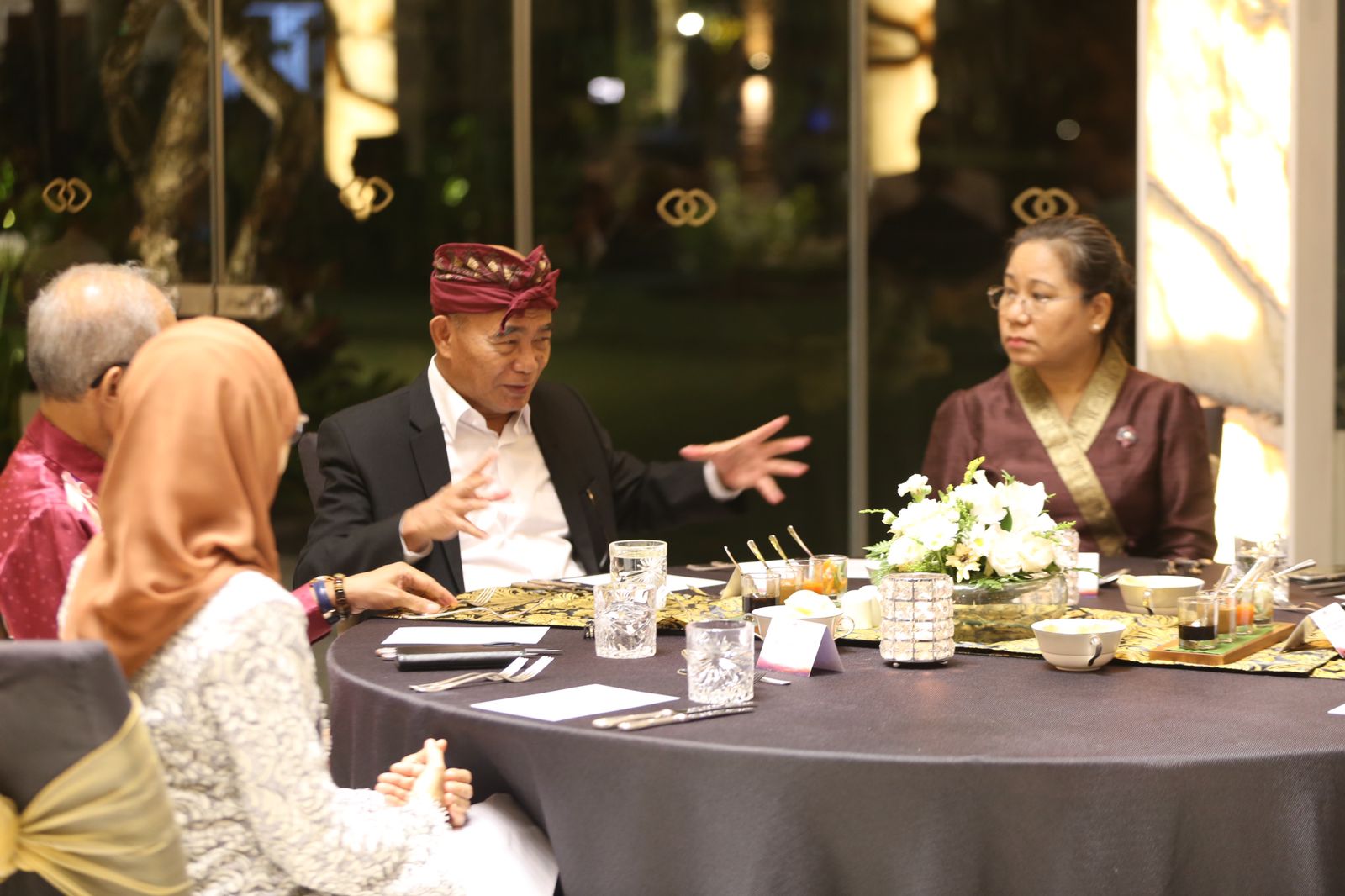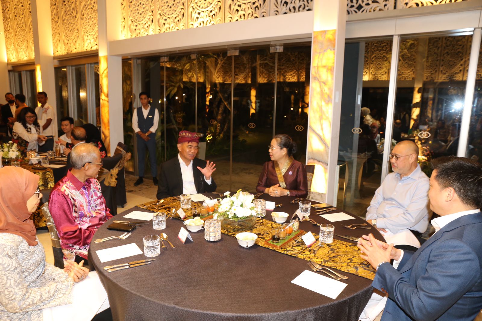 KEMENKO PMK- Menko PMK Muhadjir Effendy menjamu makan malam Menteri dan delegasi Pertemuan Dewan Menteri Pilar Sosial Budaya ASEAN ke-29 di Jewel Box, Sofitel, Nusa Dua (Minggu,7/05/2023). Hadir dalam jamuan tersebut Menteri Kebudayaan, Pemuda dan Olahraga Brunei Darussalam Haji Nazmi Bin Haji Mohammad, Menteri Pendidikan, Pemuda dan Olahraga Kamboja Nath Bunroeun, Menteri Informasi, Kebudayaan dan Pariwisata Laos Suanesavanh Vignake, Menteri Pariwisata, Seni dan Kebudayaan Malaysia Dato’ Sri Tiong King Sing, Menteri Sosial dan Pembangunan Keluarga Singapura Masagos Zulkifli, Wakil Menteri Solidaritas Sosial dan Inklusi Timor Leste Signi Chandrawati, Sekjen ASEAN Kao Kim Hourn, Sekretaris Kementerian Kesejahteraan Rakyat dan Pembangunan Filipina Rex Gatchalian, dan Deputi Menteri Tenaga Kerja, Penyandang Disabilitas, dan Sosial Vietnam Nguyen Ba Hoan