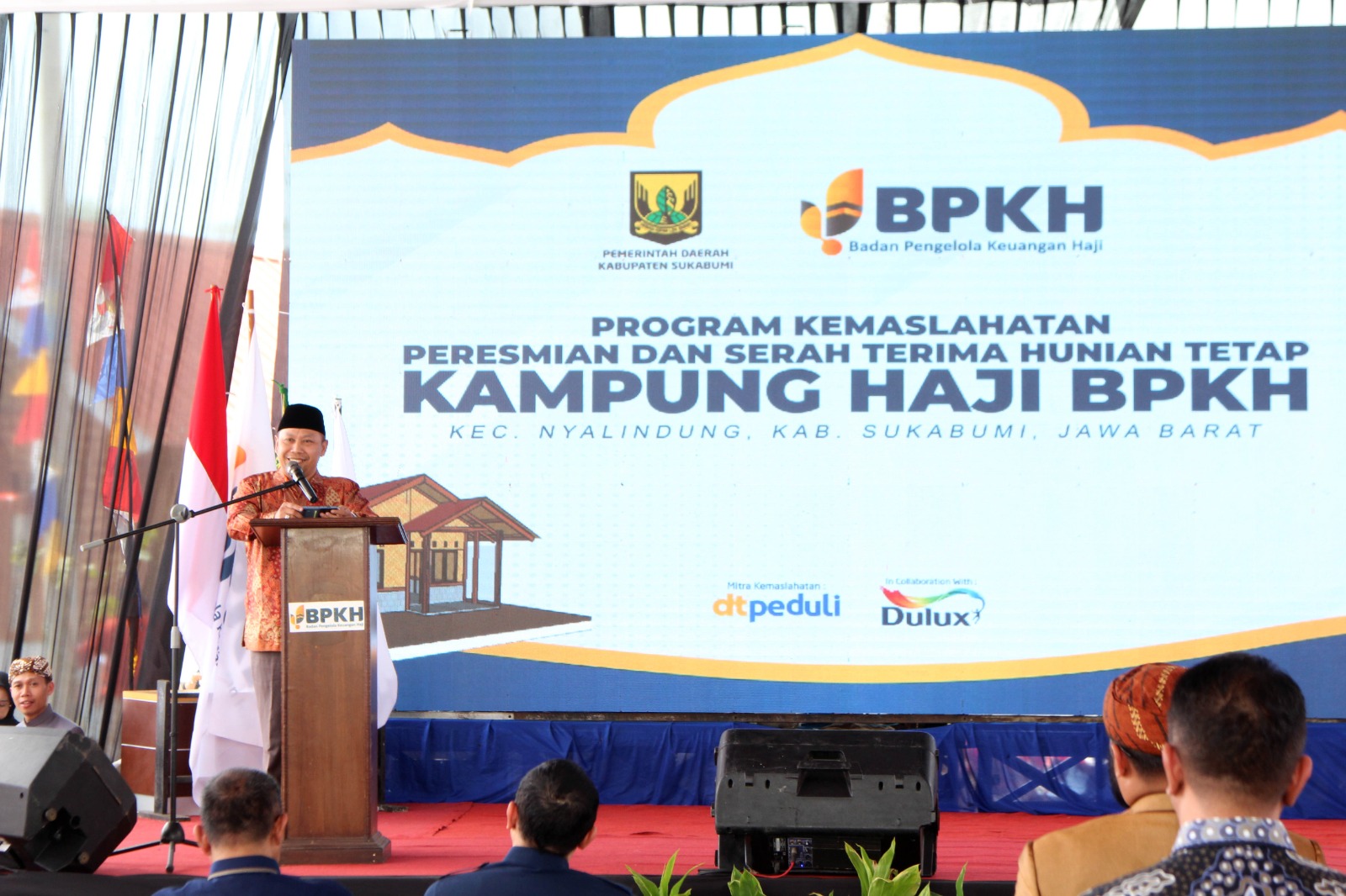 Pada kegiatan ini turut hadir perwakilan Kementerian Agama, Setda Kab. Sukabumi, Kepala BPKH, Direktur Utama DT Peduli, Perwakilan PT ICI Paint Indonesia serta perwakilan masyarakat Huntap.