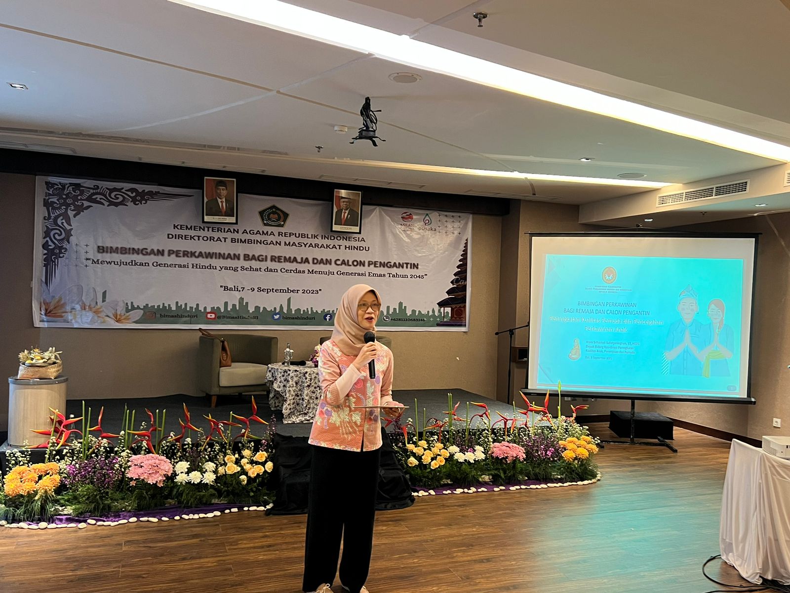Dalam meningkatkan pemahaman remaja dan calon pengantin dalam mempersiapkan kehidupan berkeluarga, Deputi Bidang Koordinasi Peningkatan Kualitas Anak, Pemuda dan Perempuan Kementerian Koordinator Bidang Pembangunan Manusia dan Kebudayaan, Woro Srihastuti Sulistyaningrum memberikan pengarahan pada Bimbingan Perkawinan (Bimwin) Bagi Remaja dan Calon Pengantin di Nusa Dua, Kabupaten Badung , Provinsi Bali yang dilaksanakan dari tanggal 7-9 September 2023. Kegiatan ini digelar Kementerian Agama melalui Direktorat Bimbingan Masyarakat Hindu (8/9/23).