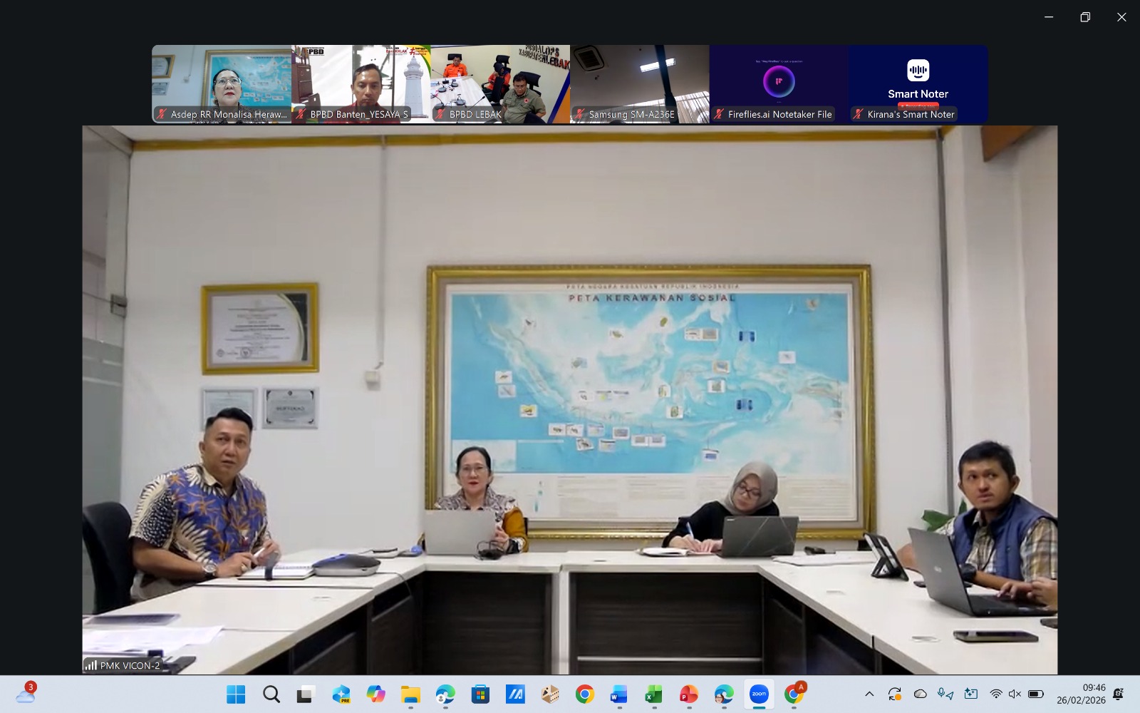 Rapat koordinasi dimoderatori Hotman Irwandy Sihite selaku Analis Kebijakan Ahli Madya. Turut hadir dalam Rakor tersebut Direktur Sistem dan Strategi Pembangunan Perumahan Perdesaan KemenPKP, Kepala Kanwil ATR/BPN Banten, Asda II Kabupaten Lebak, perwakilan KemenPU, BNPB, BPBD Provinsi Banten dan BPBD Kabupaten Lebak.