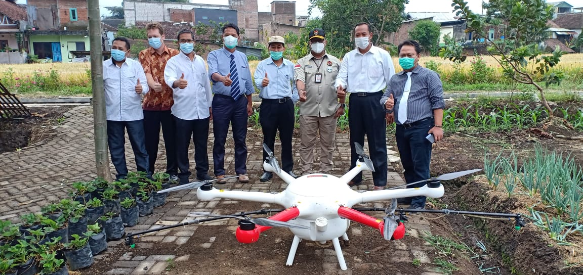 Di lokasi Smart Farming, Dody dan rombongan langsung ditunjukkan pesawat tanpa awak atau drone hasil pengembangan dosen FPP UMM yang terbang menyirami tanaman pada lahan yang dilintasi.