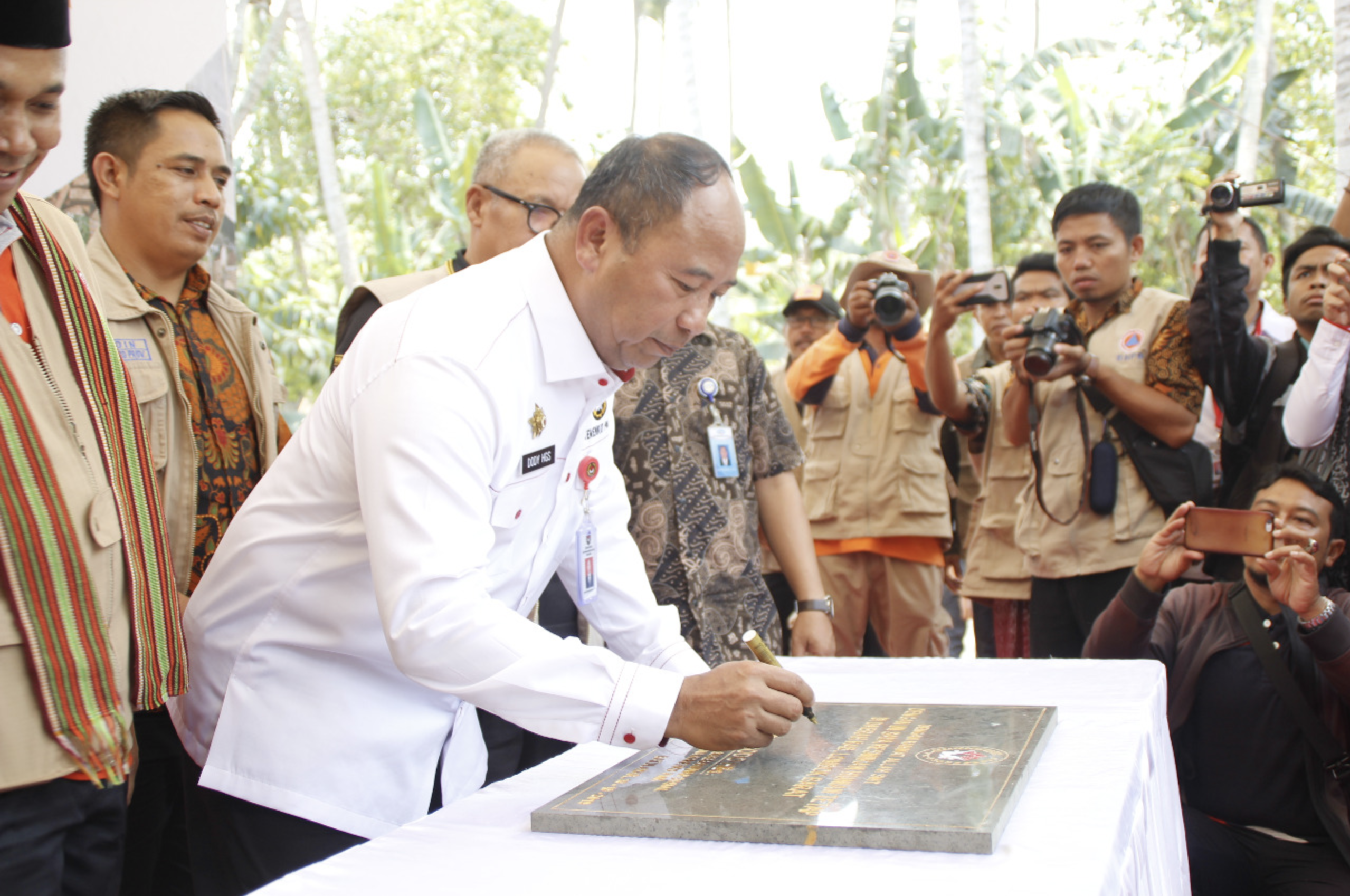 Pada kesempatan tersebut, selain simbolisasi serah terima kunci rumah kepada masyarakat terdampak gempa bumi di Lombok Barat, NTB, Deputi Bidang Koordinasi Kerawanan Sosial dan Dampak Bencana Kemenko PMK Doddy Usodo HGS juga menandatangi prasasti bantuan pemerintah dalam bentuk pembangunan rumah bagi masyarakat korban gempa NTB.