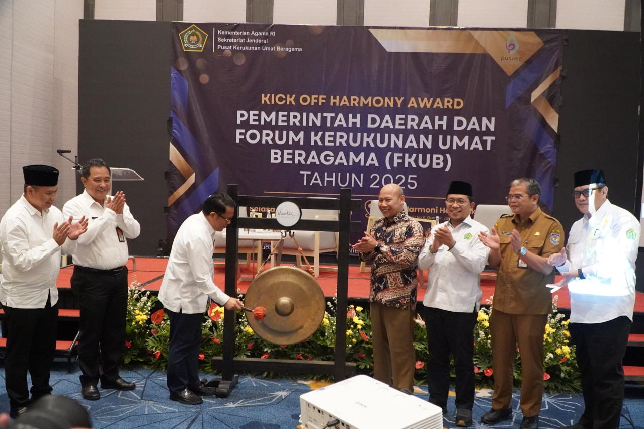 Acara Harmony Award Pemerintah Daerah dan Forum Kerukunan Umat Beragama (FKUB) Tahun 2025 dibuka secara resmi oleh Sekretaris Jenderal Kementerian Agama, Prof. H. Komaruddin Amin, bersama Deputi Warsito, Dirjen Politik dan Pemerintahan Umum Kemendagri, Bahtiar Baharuddin, serta Staf Ahli Bidang Hubungan Kelembagaan Keagamaan Kemenag, Iswandi Syahputra.