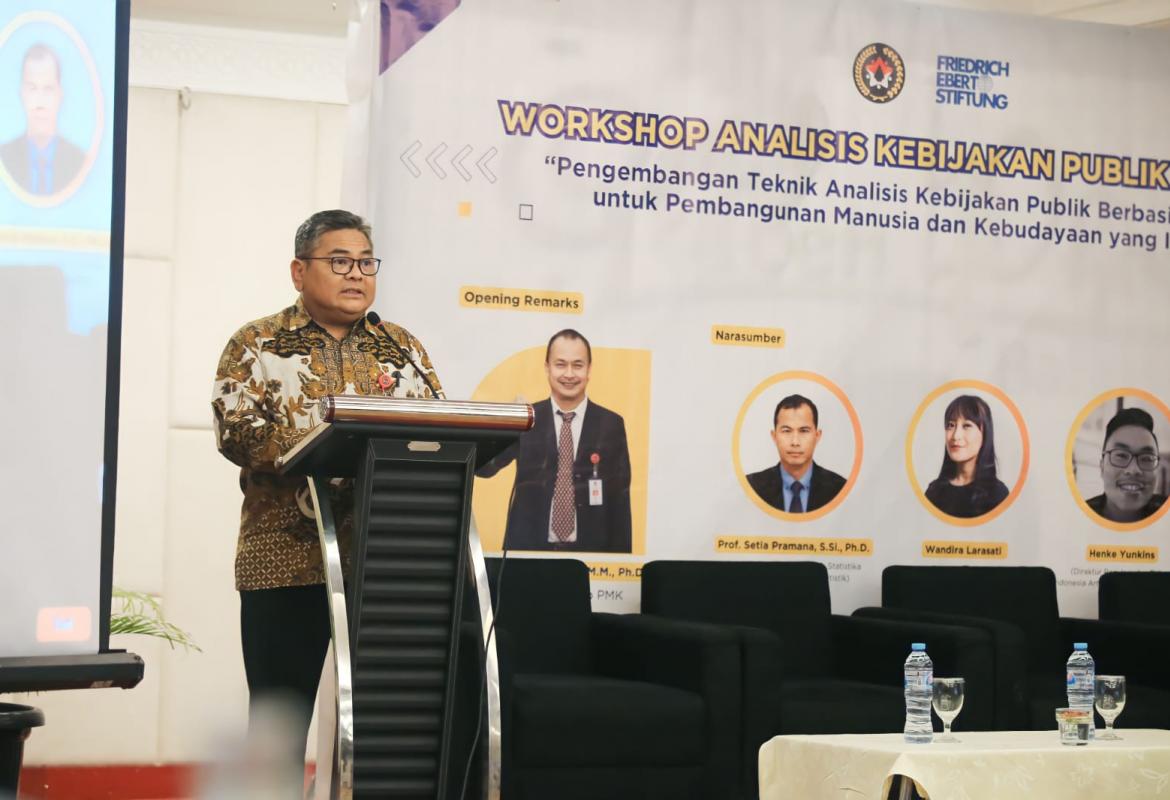 KEMENKO PMK - Staf Ahli Bidang Transformasi Birokrasi Kemenko PMK, Aris Darmansyah membuka workshop analis kebijakan