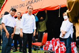 KEMENKOPMK-Menko PMK pada Minggu (5/03) mendampingi Presiden Jokp Widodo mengunjungi posko pengungsi korban kebakaran