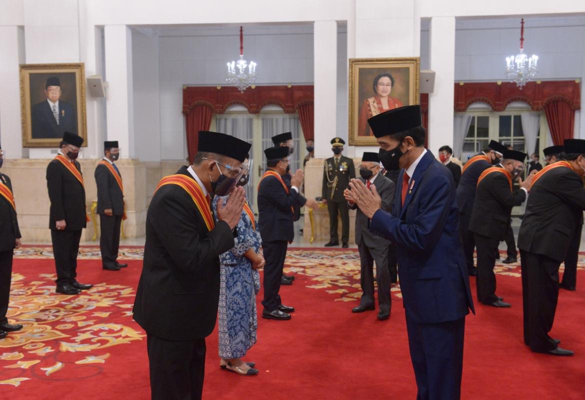 Jakarta (11/11) -- Presiden RI Joko Widodo menganugerahkan tanda kehormatan kepada para menteri Kabinet Kerja yang be