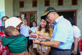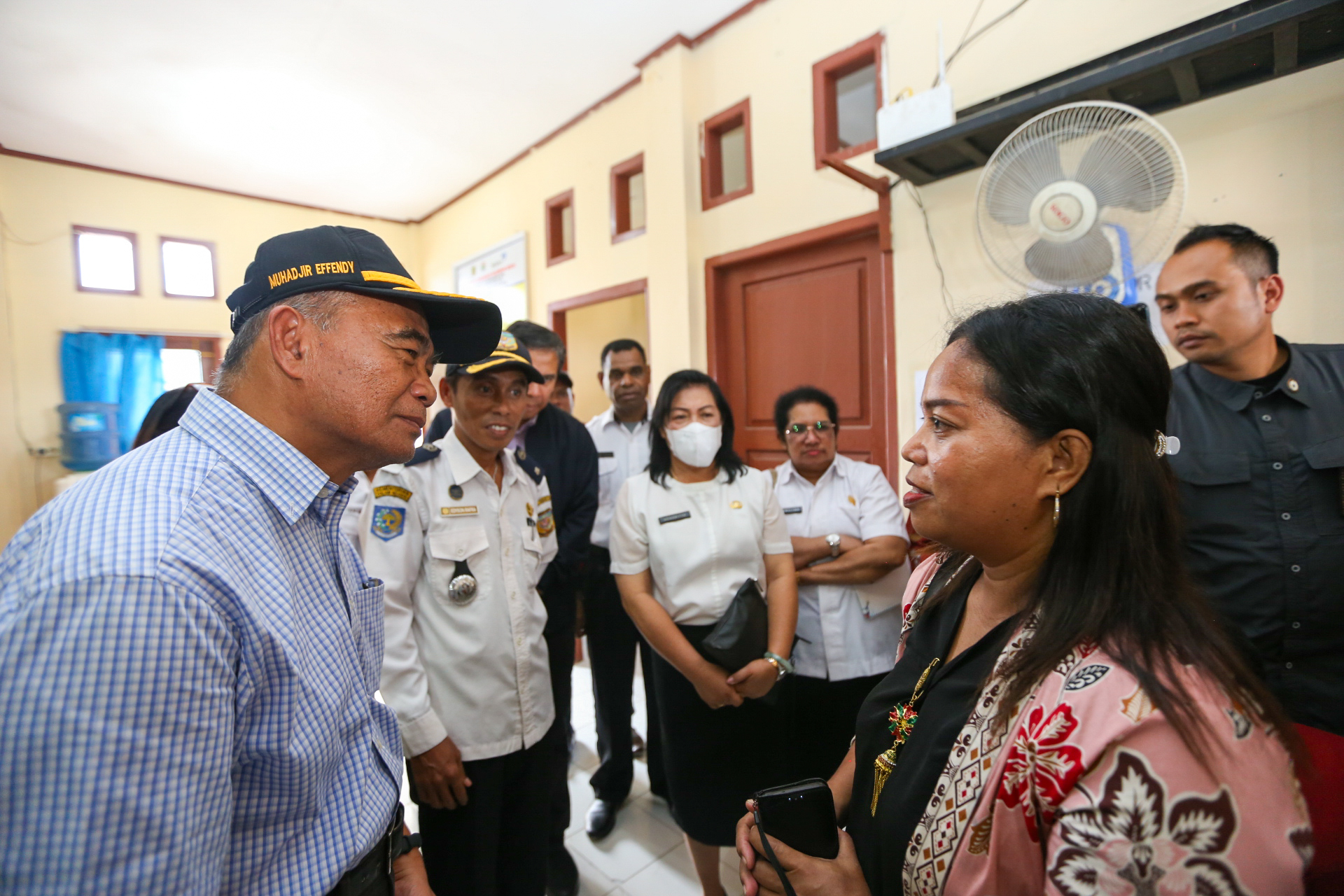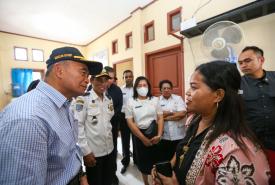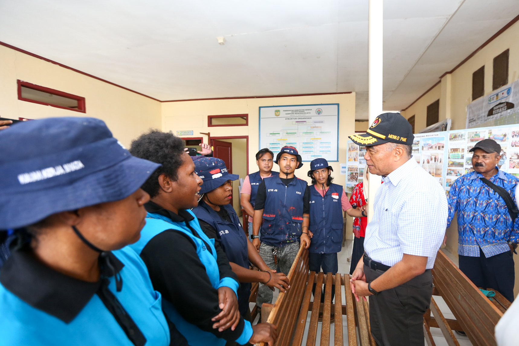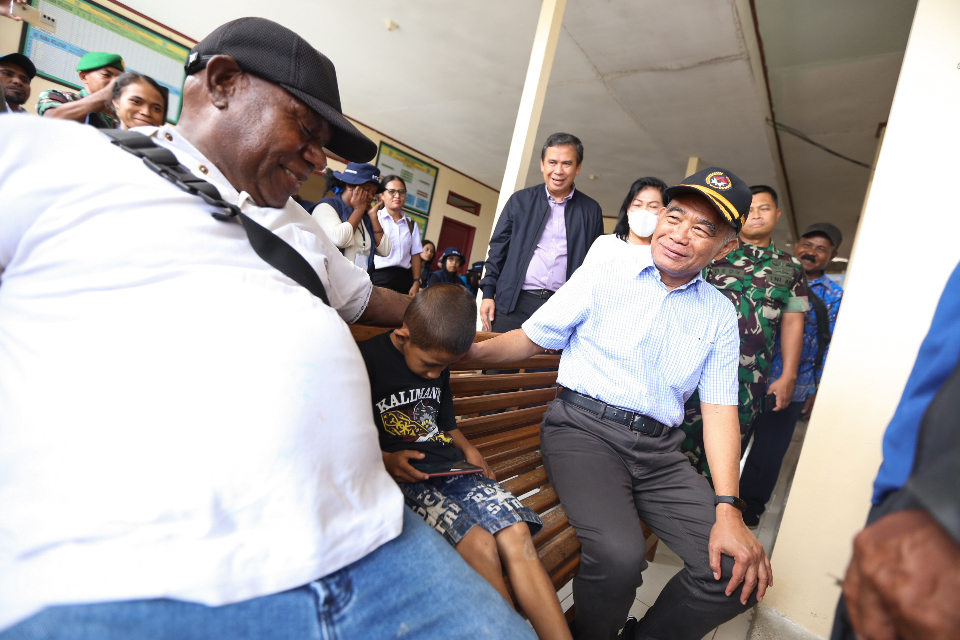 Menko PMK Muhadjir Effendy saat mengunjungi keluarga dengan anak stunting di Kampung Mawokauw Jaya, Distrik Wania Timika, Kabupaten Mimika, Papua Tengah, pada Rabu (2/8).