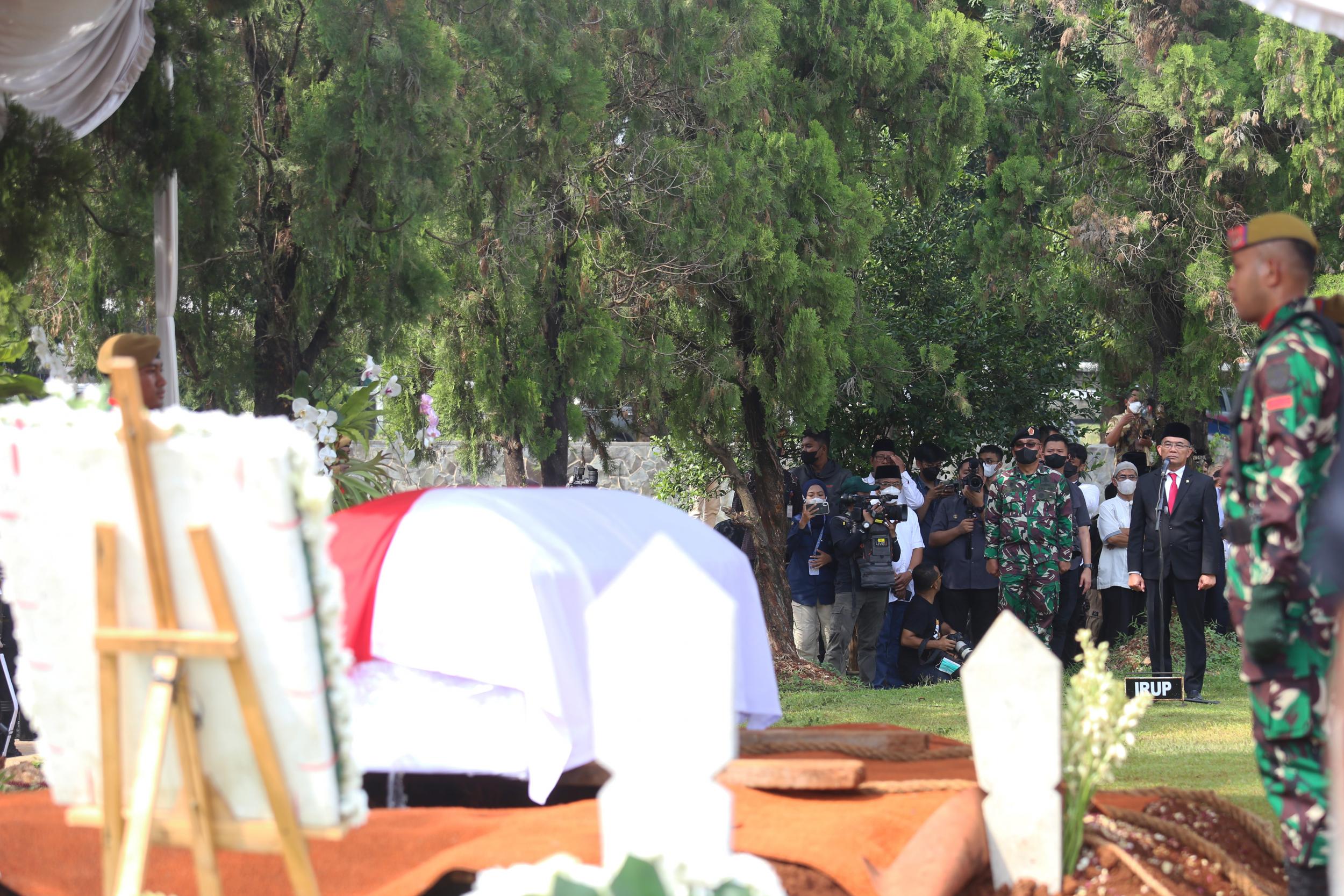 Menteri Koordinator Bidang Pembangunan Manusia dan Kebudayaan Muhadjir Effendy menjadi inspektur upacara pemakaman Azyumardi Azra di Taman Makam Pahlawan Kalibata, Jakarta, Selasa (20/9).