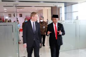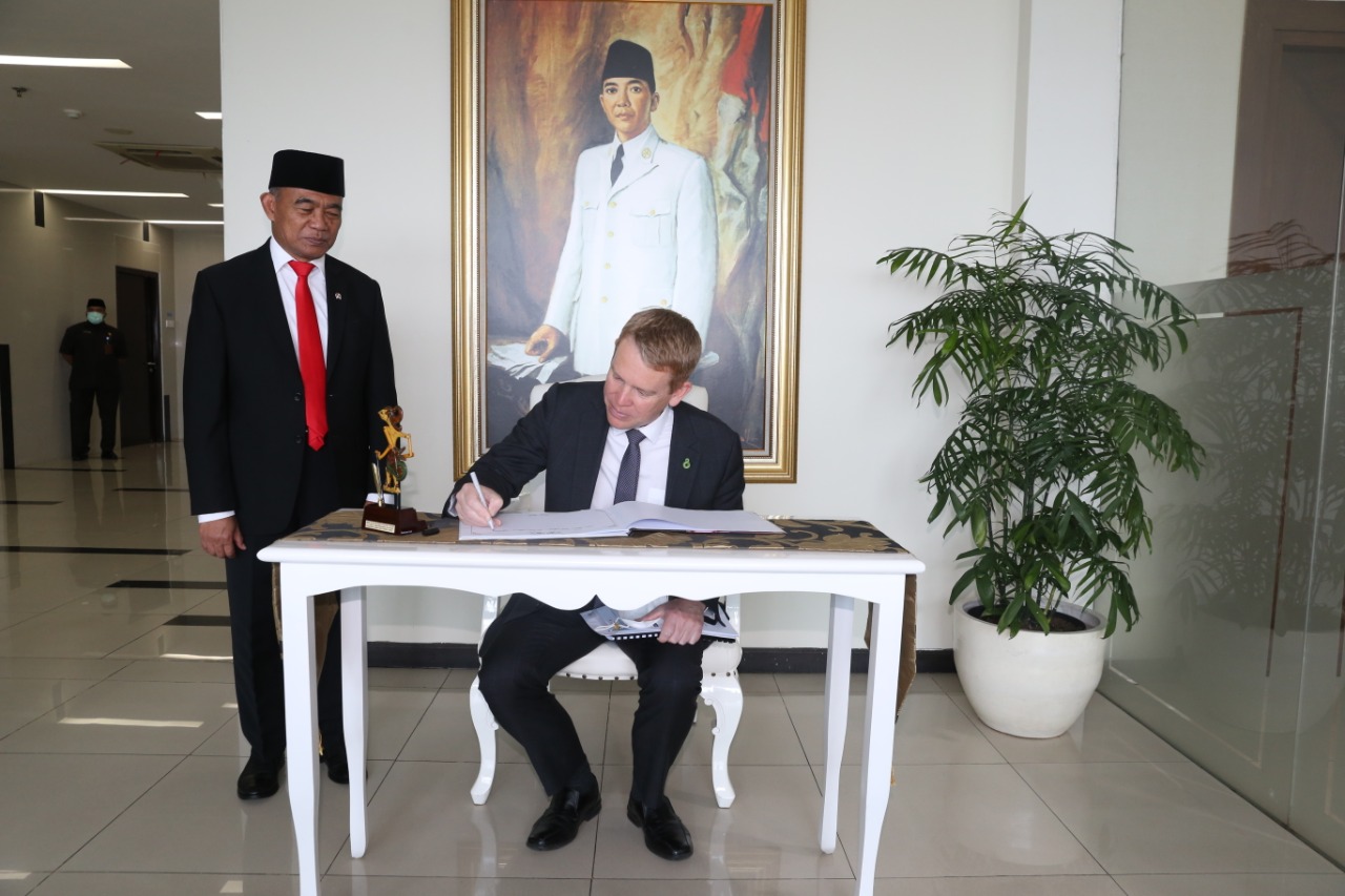 Kemenko PMK - Menteri Koordinator Bidang PMK Muhadjir Effendy melakukan pertemuan dengan Menteri Pendidikan Selandia Baru Christopher John Hipkins di Kantor Kemenko PMK, Jakarta Pusat (25/10). Dalam pertemuan Menko Muhadjir dan Menteri Christopher membahas mengenai perkembangan kerjasama pendidikan antara Indonesia dan Selandia Baru. Kedua negara tersebut sepakat untuk terus meningkatkan kerjasama di bidang pendidikan. Turut mendampingi Menko PMK; Seskemenko PMK, Plt Deputi 6, Stafsus Menko, dan Sesdep 6.