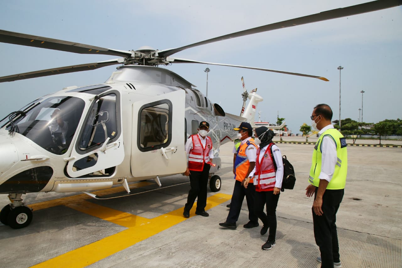 Dalam kunjungannya itu, Menko PMK bersama Menhub dan jajaran menumpangi helikopter dari Bandara Halim Perdanakusumah ke Pelabuhan Bakauheni.