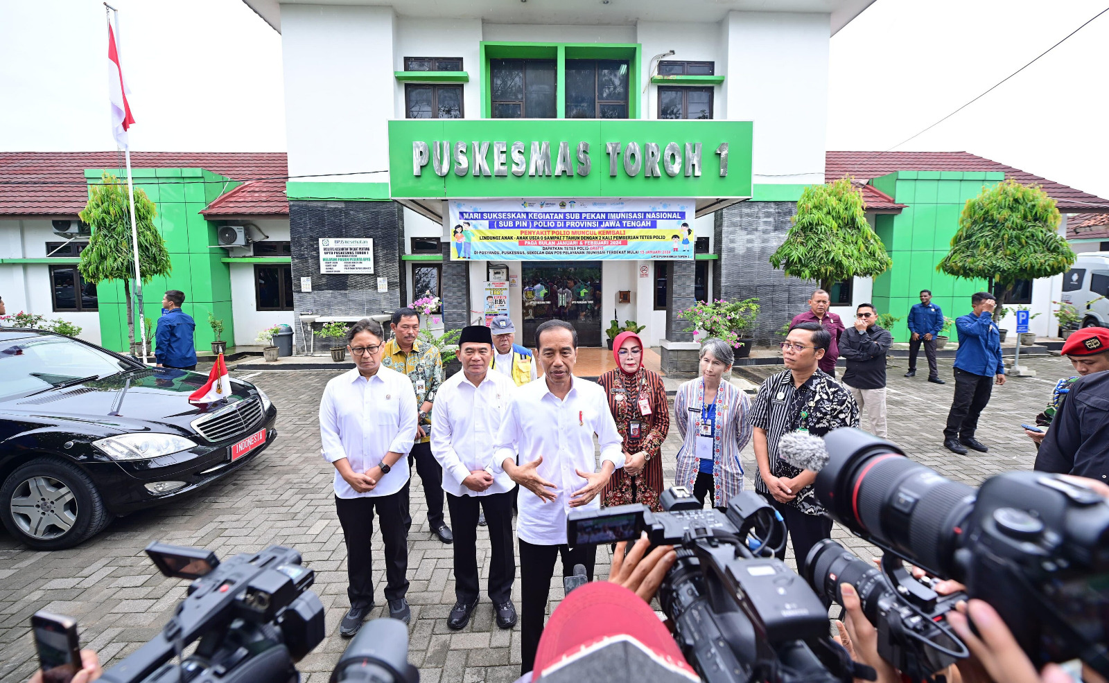 KEMENKO PMK -- Menteri Koordinator Bidang Pembangunan Manusia dan Kebudayaan (Menko PMK) Muhadjir Effendy mendampingi Presiden RI Joko Widodo meninjau langsung Puskesmas Toroh 1, Kabupaten Grobogan, Provinsi Jawa Tengah, pada Selasa, (23/1/2024).