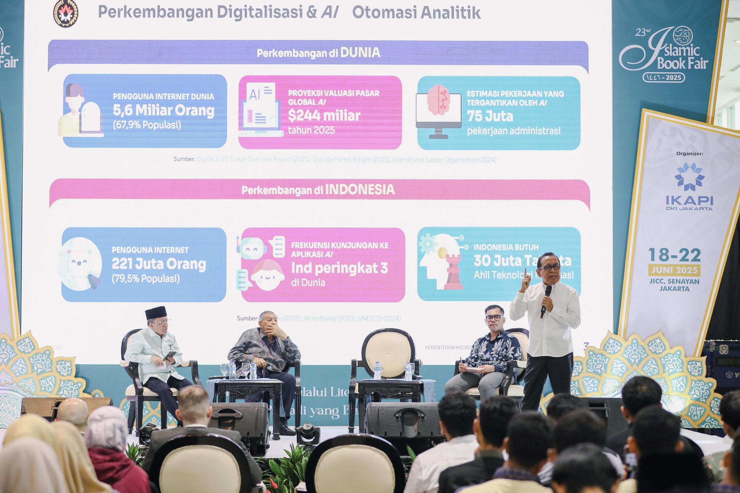 Hal ini disampaikan saat menjadi narasumber dalam Diskusi Publik bertajuk Penguatan Literasi dan Pentingnya Menyiapkan Kedaulatan AI Versi Indonesia yang digelar Majelis Hukama Muslimin Indonesia di Jakarta Convention Center, Rabu (18/6/2025). Kegiatan turut menghadirkan narasumber Pendiri dan Anggota Majelis Hukama Muslimin M. Quraish Shihab, Peneliti Pusat Riset Sains Data dan Informasi BRIN Rezzy Eko Caraka.