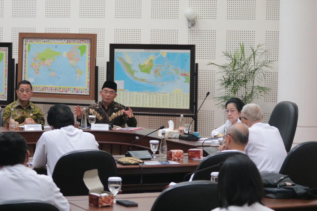 Jakarta (13/2) - Pancasila adalah landasan yang sangat fundamental bagi penyelenggaraan negara Indonesia. Namun, kini, di tengah meluasnya paham radikalisme, nilai-nilai Pancasila mulai pudar. Paham radikalisme muncul salah satunya karena lunturnya pemahaman terhadap nilai-nilai Pancasila. Terkait dengan hal tersebut, Menteri Koordinator Bidang Pembangunan Manusia dan Kebudayaan (Menko PMK) Muhadjir Effendy, hari ini, bertemu dengan Ketua Dewan Pengarah Badan Pembinaan Ideologi Pancasila (BPIP) Megawati Soekarnoputri.