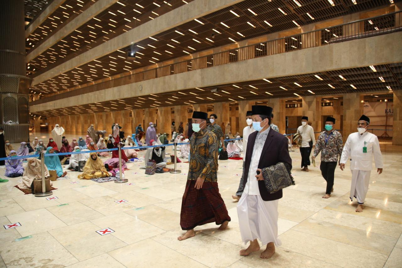 Sementara salat tarawih di Masjid Istiqlal diketahui sudah menjalankan protokol kesehatan secara ketat. Mulai di pintu masuk, jamaah diperiksa suhu badan, saf antarjamaah berjarak sekitar satu meter, ketika datang dan pulang tarawih pun diterapkan antrean berjarak. Salat tarawih berjamaah yang diimami oleh Drs. H. Muhasyim Abdul Majid, MA itu juga tetap khusyuk kendati dipersingkat dengan membaca surat-surat pendek.