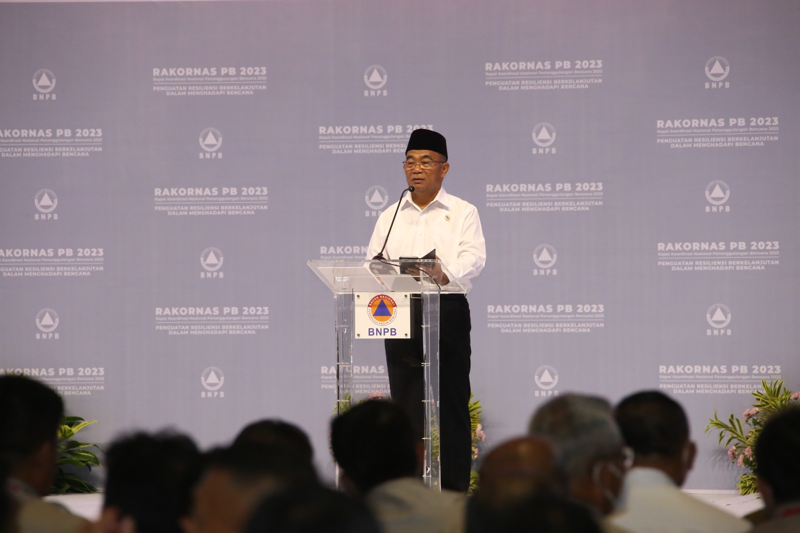 KEMENKOPMK-Menko PMK menjadi pemateri pada Rakornas Penanggulangan Bencana Tahun 2023 yang berlangsung di JIEXPO, Kemayoran, Jakarta Pusat (2/03). Dalam materinya, Menko PMK menekankan pentingnya kurikulum kebencanaan untuk meningkatkan pengetahuan mitigasi bencana