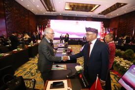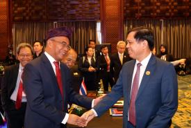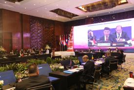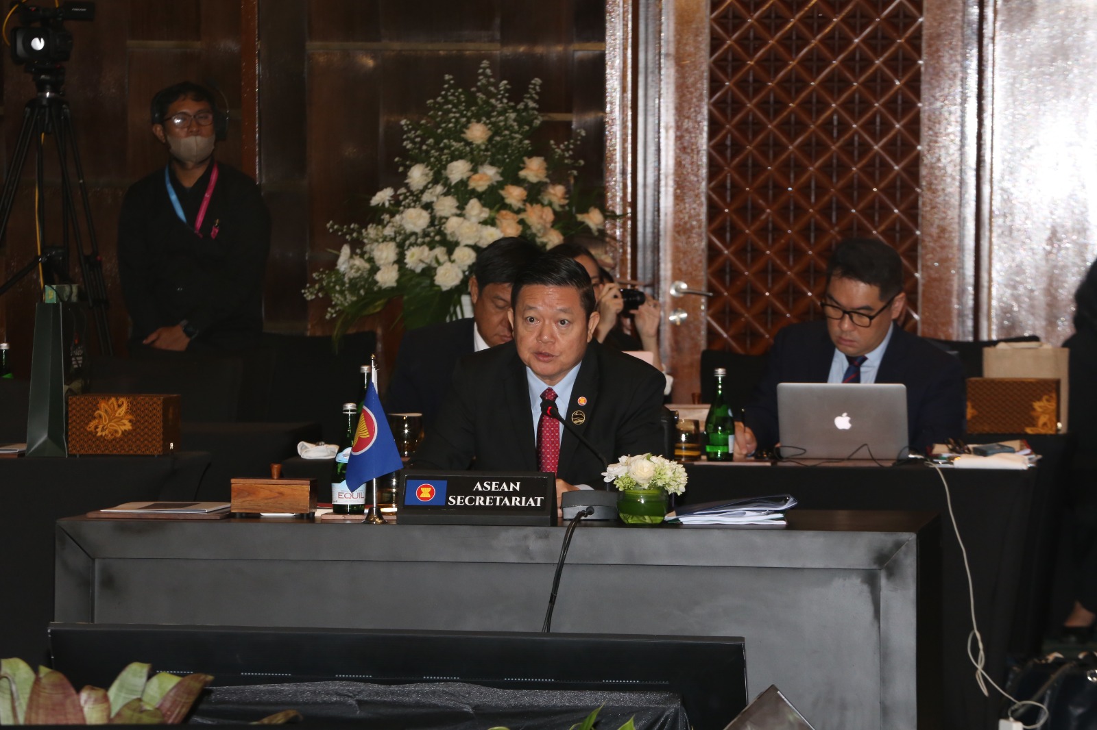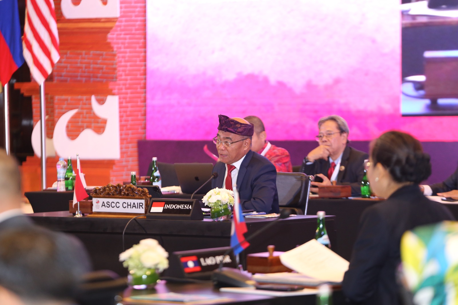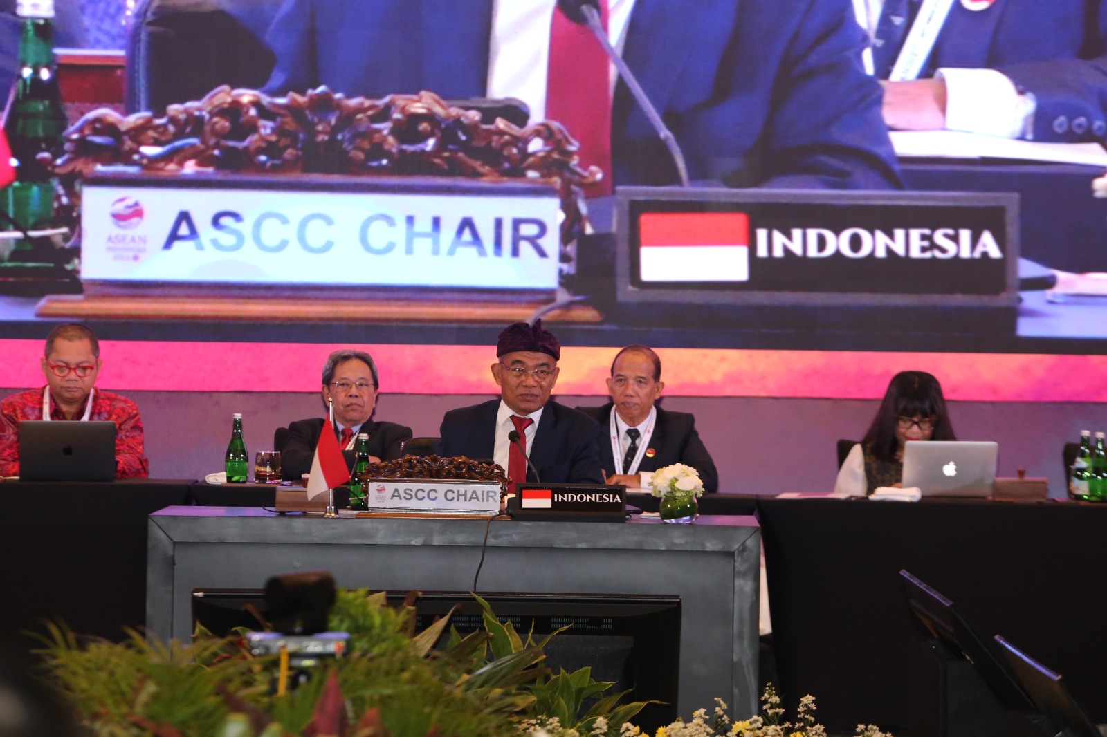 Menko PMK Muhadjir Effendy selaku Pemimpin Sidang Dewan Menteri ASCC memberi pengarahan pada pertemuan tentang prioritas utama Pilar Sosial Budaya ASEAN di bawah tema Keketuaan Indonesia, “ASEAN Matters: Epicentrum of Growth”.
