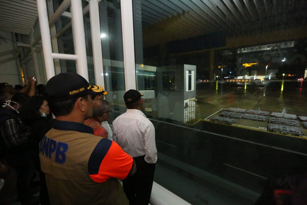 Menteri Koordinator Bidang Pembangunan Manusia dan Kebudayaan (Menko PMK) Muhadjir Effendy menyaksikan secara langsung proses tibanya WNI ABK Diamond Princess sampai dipindahkan ke bus bersama pejabat penting lainnya.