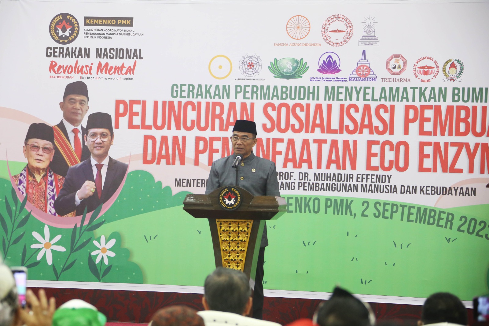 Hal itu disampaikan saat memberikan sambutan dalam acara "Peluncuran Sosialisasi Pembuatan dan Pemanfaatan Eco-Enzyme" bertajuk "Gerakan Permabudhi Menyelamatkan Bumi" yang diselenggarakan oleh Persatuan Umat Buddha Indonesia (Permabudhi) bekerja sama dengan Kemenko PMK di Aula Heritage Kemenko PMK, pada Sabtu (2/9).
