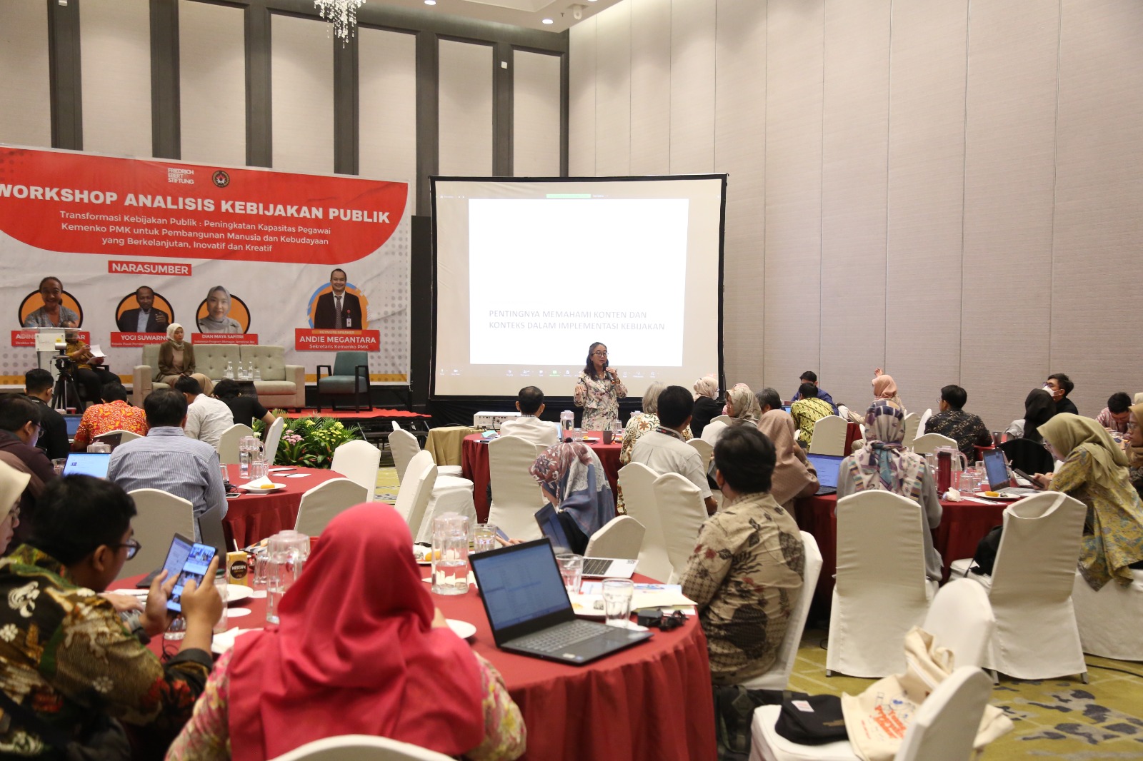 KEMENKO PMK – Mewakili Sesmenko PMK, Staf Ahli Bidang Penguatan Stabilitas Politik dan Pemerintahan Kemenko PMK Sorni Paskah Daeli, membuka secara resmi kegiatan Workshop Analisis Kebijakan Publik dengan tema “transformasi kebijakan publik: meningkatkan kepasitas pegawai Kemenko PMK untuk pembangunan manusia dan kebudayaan yang berkelanjutan, inovatif dan kreatif” yang diselenggarakan secara hybrid di Hotel Harris Vertu, Jakarta, Kamis (19/10).